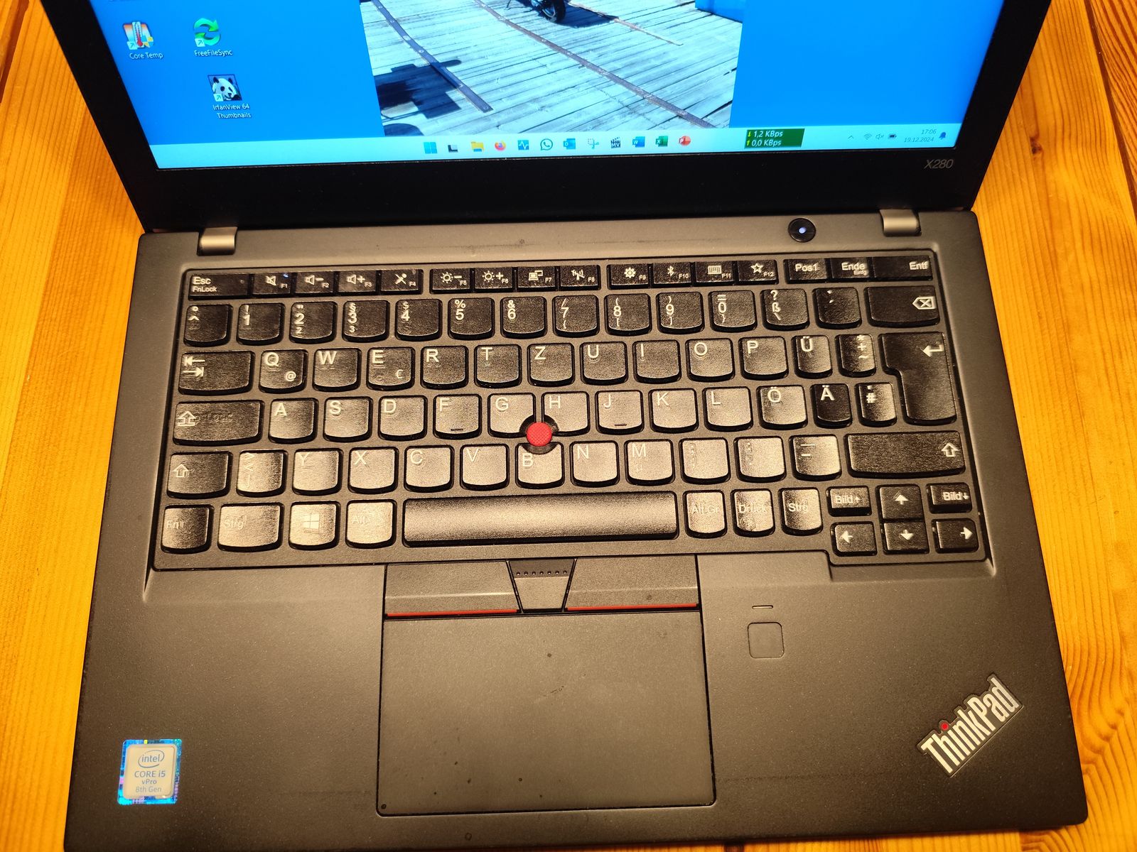 Verkaufe meinen kleinen Reisebegleiter Lenovo X280. Das Gerät funktioniert einwandfrei, ist sehr handlich, robust und lässt sich mit einem USB C Ladegerät (min 65W) laden. Der Bildschirm ist 12.5“ 1920x1080 („Full HD“) mit Touch.Die Maße des Gerätes sind 307,7mm x 209,8mm x 17,4mm, das Gewicht 1,27 KK. WIN 11 ist installiert. Prozessor: Intel(R) Core(TM) i5-8350U CPU @ 1.70GHz 1.90 GHz, 8G Ram, FP 255GB. Der Akku hat noch ca. 80% seiner Kapazität. Die Wärmeleitpaste im Rechner habe ich gerade erneuert. Das Lenovo Ladegerät ist dabei. Preis 140€ zzgl, 7€ Versand