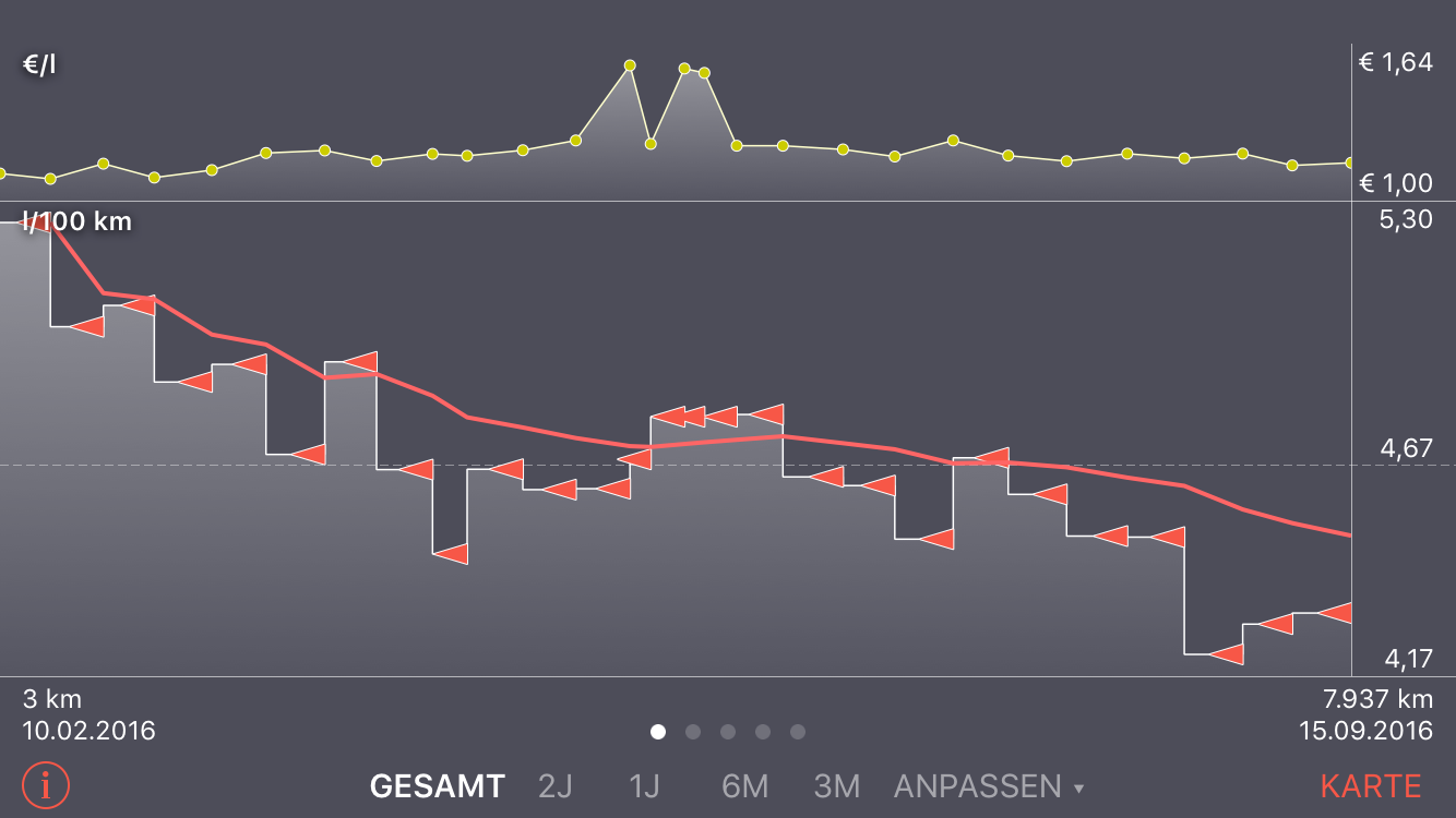 Spritverbrauch / Reichweite scherbee 17. September 2016 Nach 8.000 km habe ich nun 4,67 l/km im Schnitt Tendenz weiter fallend.Fahre eine DCT Version und vorwiegende Überland, kaum Stadt. Dafür aber immer wieder mit Sozia.[attachment=0]IMG_4463.PNG[/attachment]lgScherbee