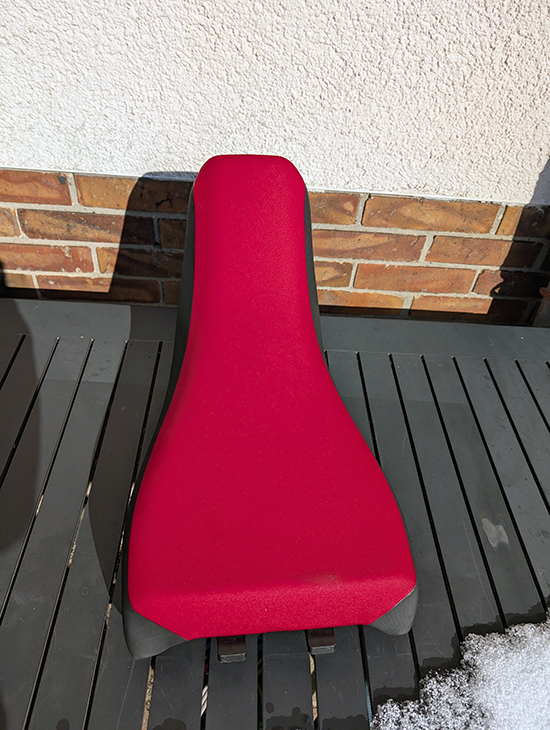 - Ledereinsätze an Gesäß und Beininnenseiten für besseren Halt und Hitzeschutz