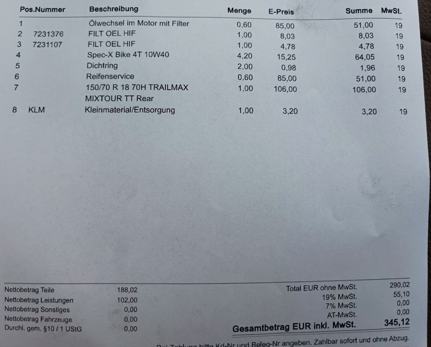 der Reifen ist mit 106€ recht günstig, aber 64€ + Märchensteuer für das Öl find ich heftig.