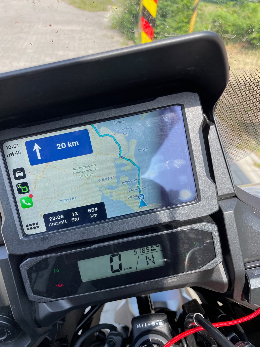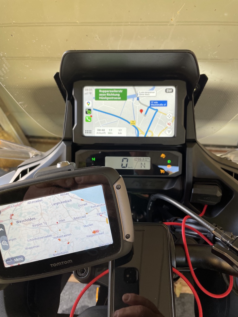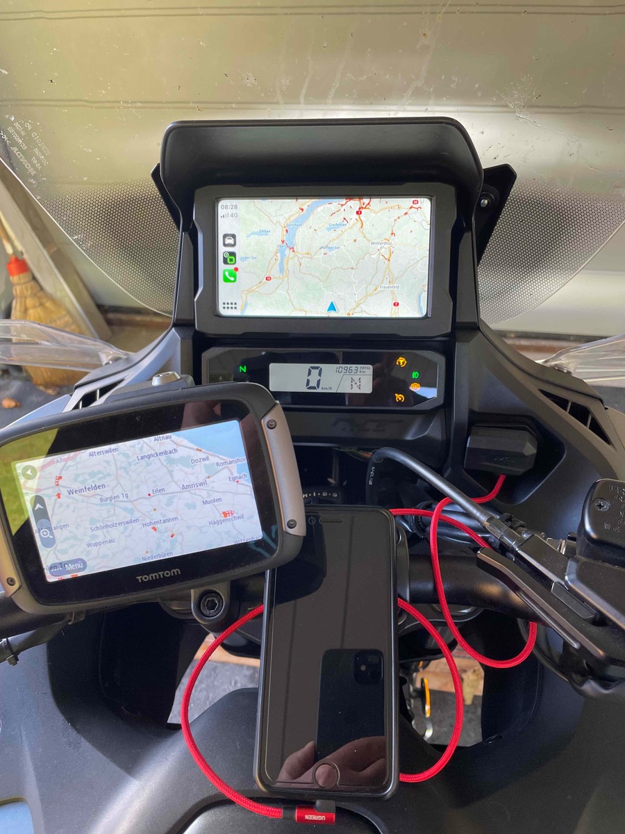 Ich persönlich bin kein Fan vom GPS oberhalb des TFT Honda Display zu montieren. Daher ist diese Option für mich keine Lösung.Ich fahre zu 99% mit CarPlay auf dem TFT Display. Die Geschwindigkeit sehe ich im kleinen Display und/oder im TFT auf der TT App. Und welcher Gang drin ist, weiss ich nach 50 Jahren Führerschein eh und brauche das TFT nicht dafür.