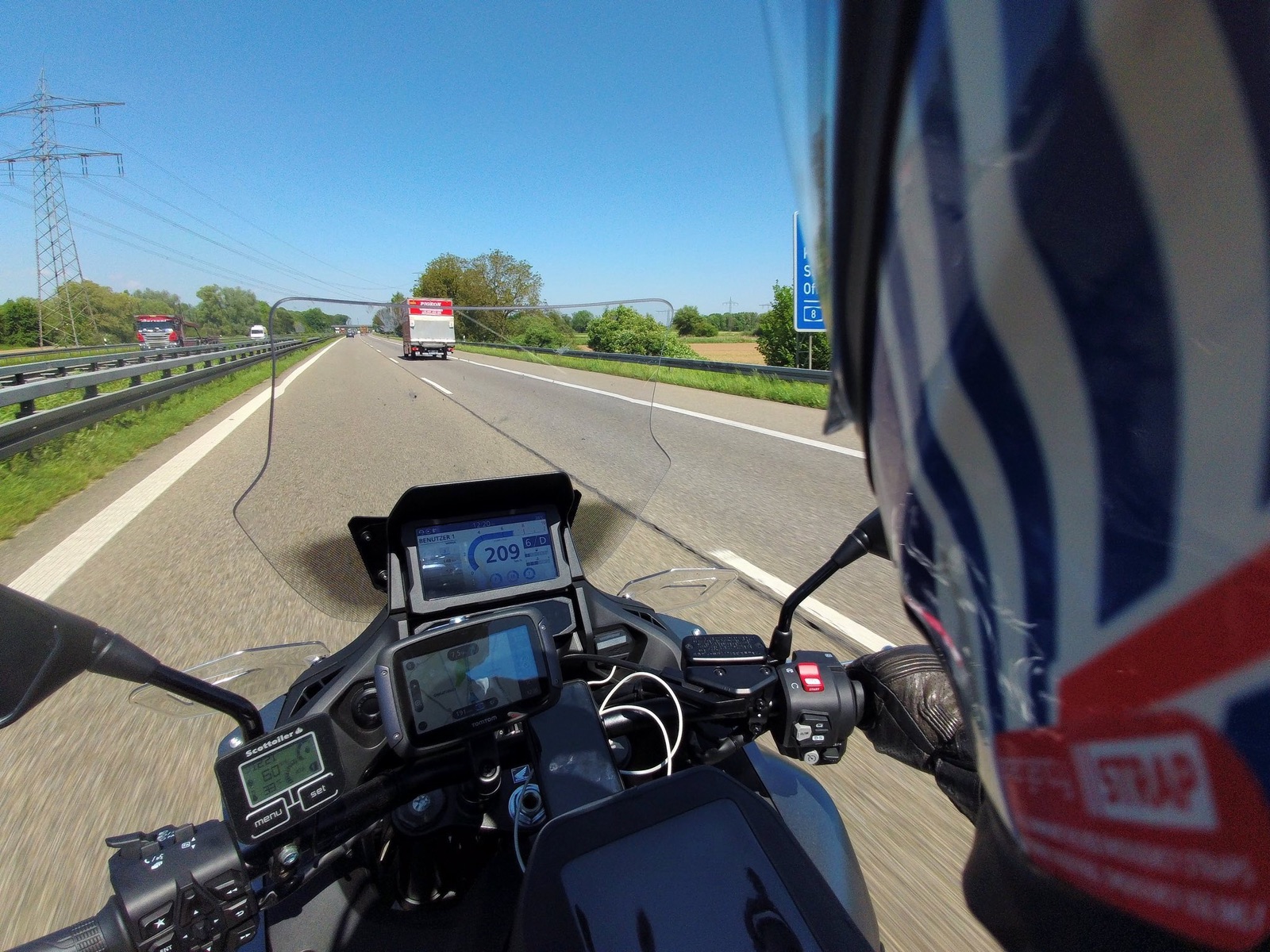 - die Installation iPhone ist nicht optimal, aber besser als in der Jacke. Im heissen Sommer gibt das iPhone, infolge hoher Temperatur, auf. Bei Regen und auf Tour habe ich den Tankrucksack dabei und dann ziehe ich das Kabel in den Tankrucksack und dann ist das iPhone auch vor Wasser geschützt.- die Helmkamera hat durch die Montage links am Helm einen eingeschränkten Bildausschnitt erstellt (Helm habe ich nach der Tour ersetzt)