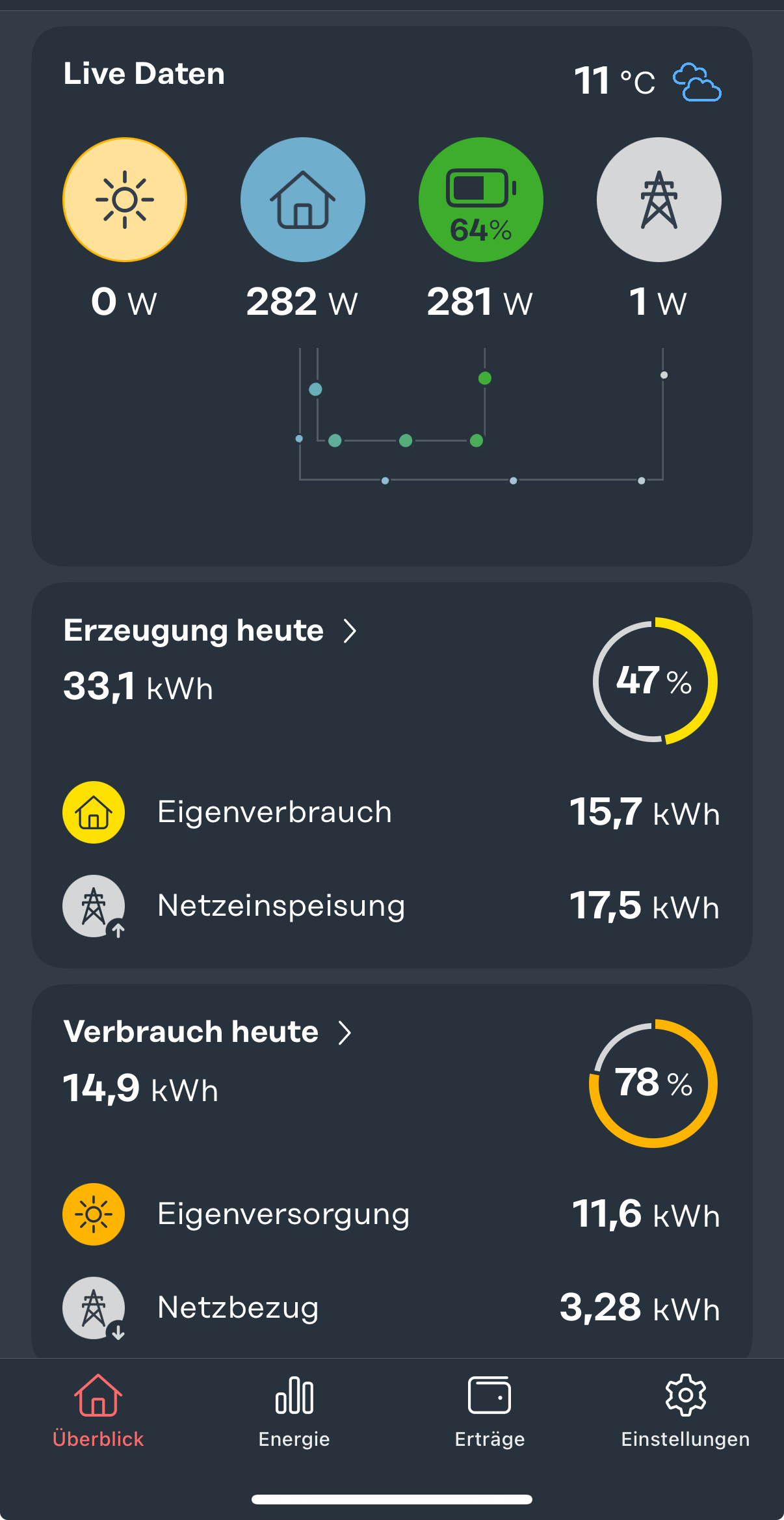 Schlussendlich muss man es wollen und seine Großverbraucher halt einschalten, wenn die Sonme scheint und abends dann nicht mehr so viel Energie verbraten.