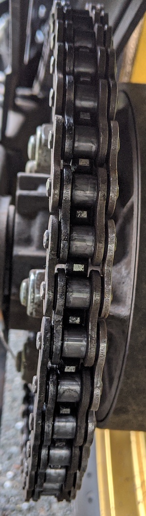 Insgesamt öle ich recht wenig nach, nur alle 35km im Trockenen und 16km im Nassen. Bei trockenem Wetter passt es recht gut, bei Regen könnte es noch etwas öfter sein. Der Verschleiß ist überraschend gering, wie gesagt bisher habe ich nur einmal die Kette nachgespannt und das Ritzel sieht auch noch sehr gut aus. Bei meiner ersten Africa Twin war nach 39Tkm ohne Kettenöler die zweite Kette fällig.