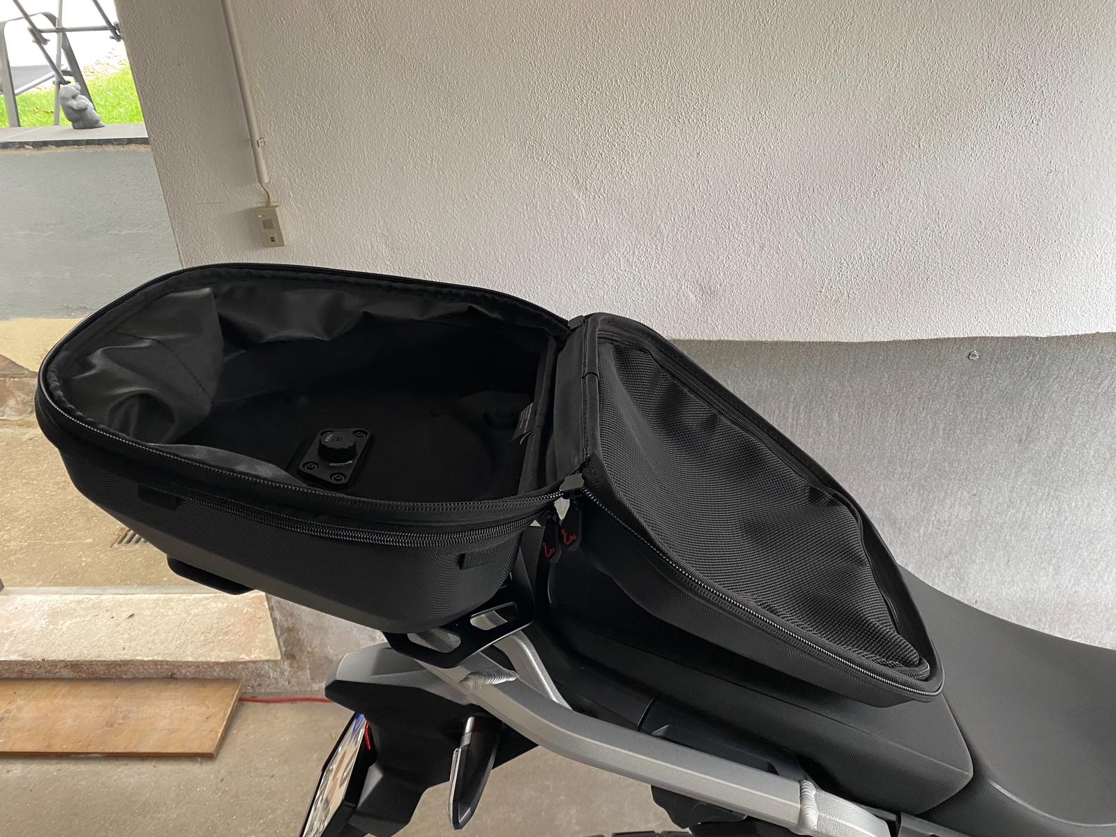 Ein TC sollte nicht wie ein Dixi aussehen und eine Hecktasche mit der Gepäckbrücke (Original kann ich dazu auswechseln) fest verbunden sein - keine Schnallen.