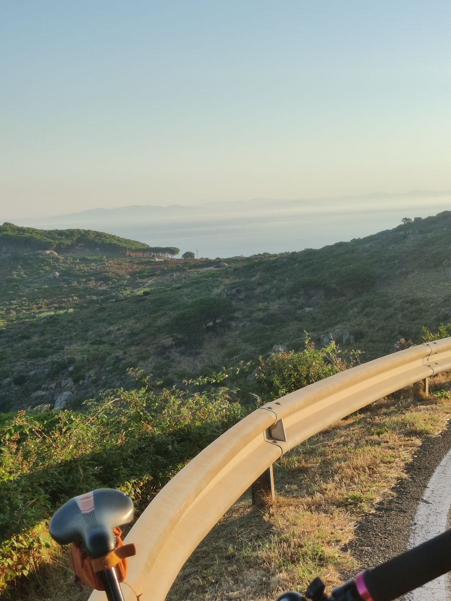 In der Früh aufs Radl. Hier im Süden hat es um 7:00 schon 29°. Grüße von der Insel Giglio