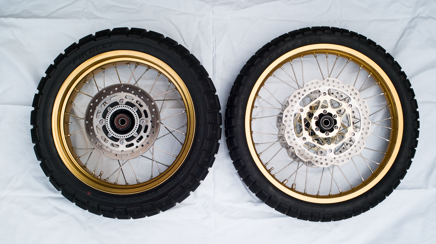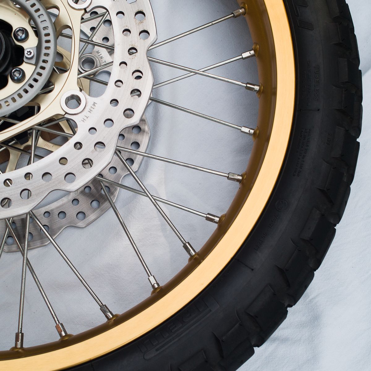 Da mein zweiter Radsatz mit goldenen Felgen nicht zu meiner neuen schwarzen 1100er passt, ist er zu haben. Die Räder sind in sehr gutem Zustand, die Speichen weisen aber leichte Korrosionsspuren auf (siehe Fotos).