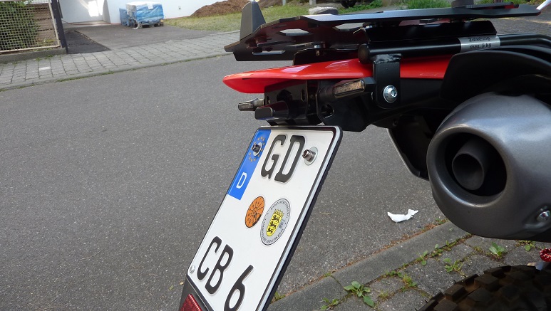 Gepäckträger wurde selber zusammen gebaut, aus Hepco&Becker Grundträger und SW-Motech Platte mit Givi Adapter, somit passt das Topcase von der AT auch auf die CRF 250, falls das mal nötig wäre. -