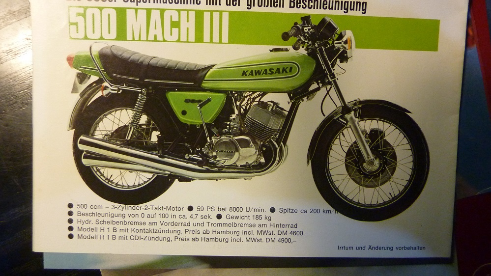 Der Wasserbüffel ist heute eine Wertanlage, Hatte noch ein schlechteres Fahrwerk, als meine Kawa 500 Mach3. Die Dreizylinder Zweitakter waren von der Leistung für die damalige Zeit schon der Hammer. Die liebste ist mir aber eine 450er Scrambler.