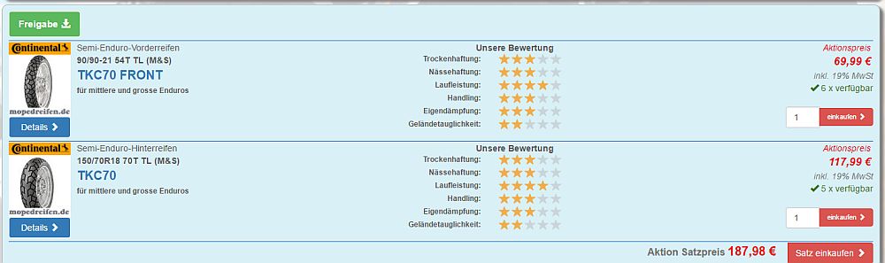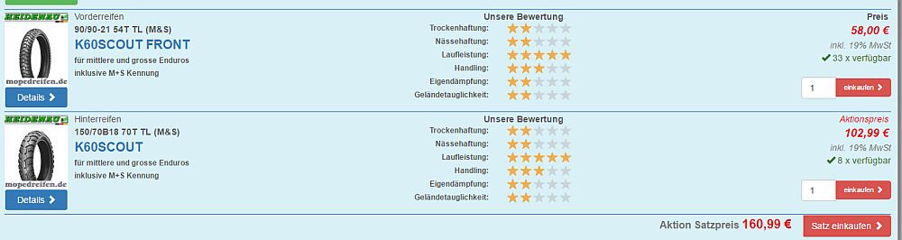 Interessante Bewertung - ich hätte gedacht der Heidenau wäre vorne