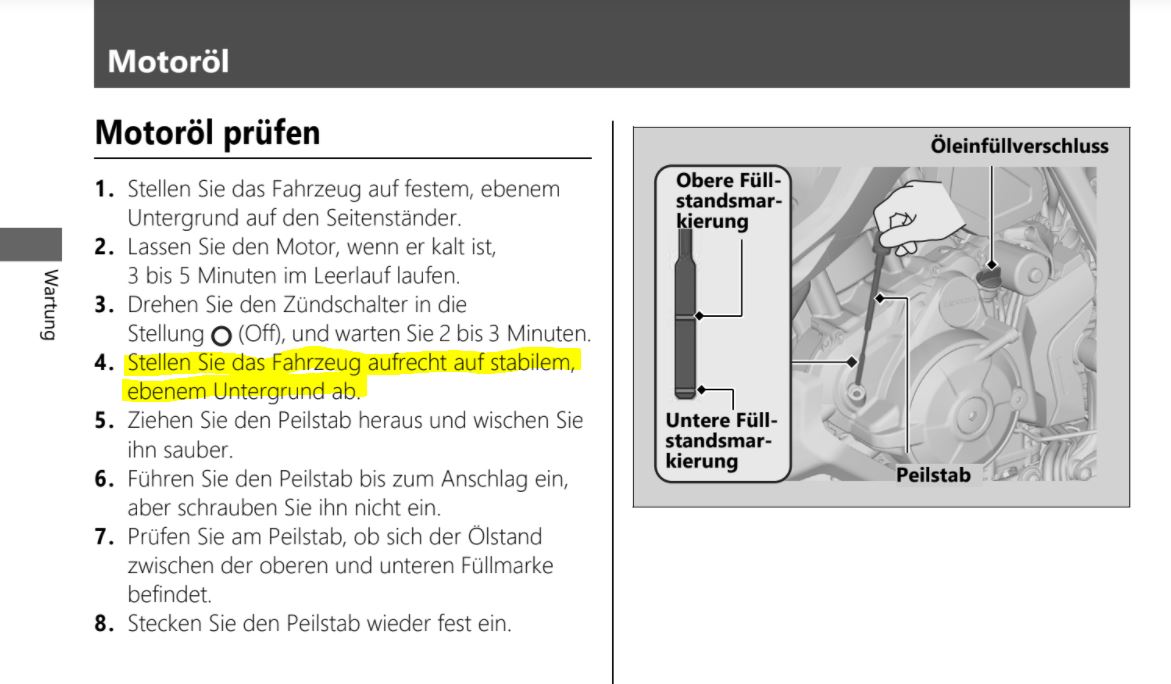 Übrigens: Momentan lege ich in der Garage unter den Seitenständer ein 25mm hohes Holzbrett, damit genügt die "Schräglage" immer noch für einen sicheren Stand. Beim Abstellen unterwegs suche ich vor dem Absteigen inzwischen bewusst eine ggü. den Rädern erhöhte Seitenständerposition, mir kippt die Maschine beim Absteigen / Entlasten der Federung schon beinahe über den Seitenständer nach links - der Druck und damit die Haftung des HR ist ziemlich gering, wenn da mal der Untergrund noch dazu etwas glatt/schmierig ist...