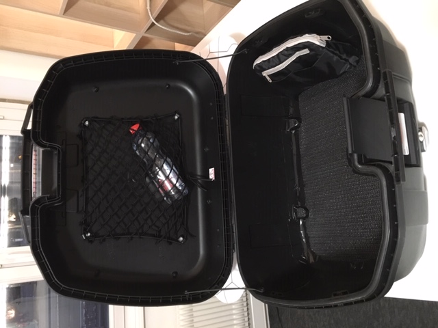Voilà, da rutscht nix mehr rum. Mein Topcase ist ein Givi/Kappa Trenker 52L. Ja ich weiss, so ein Riesenkaninchensarg ist ein ästhetisches Ungetüm, aber es ist halt praktisch, und wenn ich fahre seh ich's ja nicht. Und seit ich das Netz etc. irangebastelt hab, hör ich auch den Inhalt nicht mehr klappern. Und warum die Bilder verdreht sind, weis ich auch nicht.
