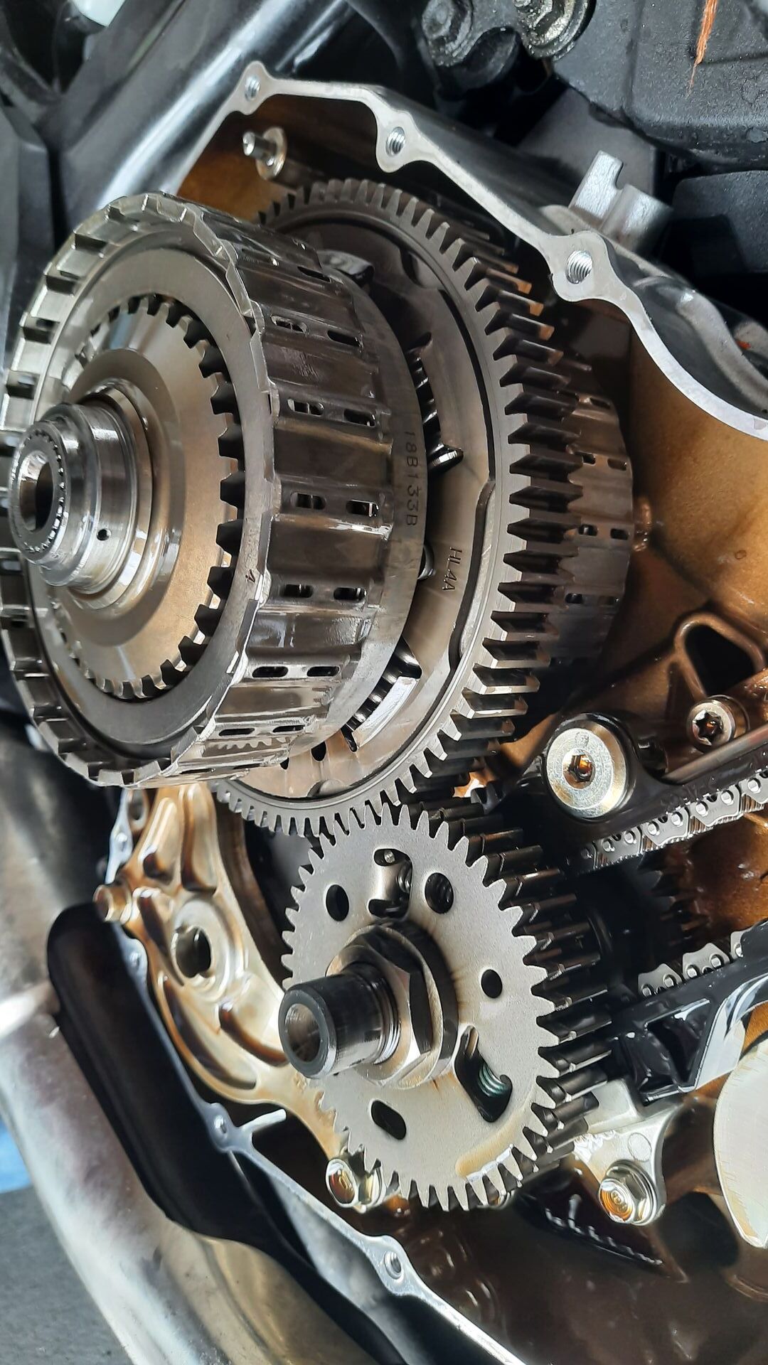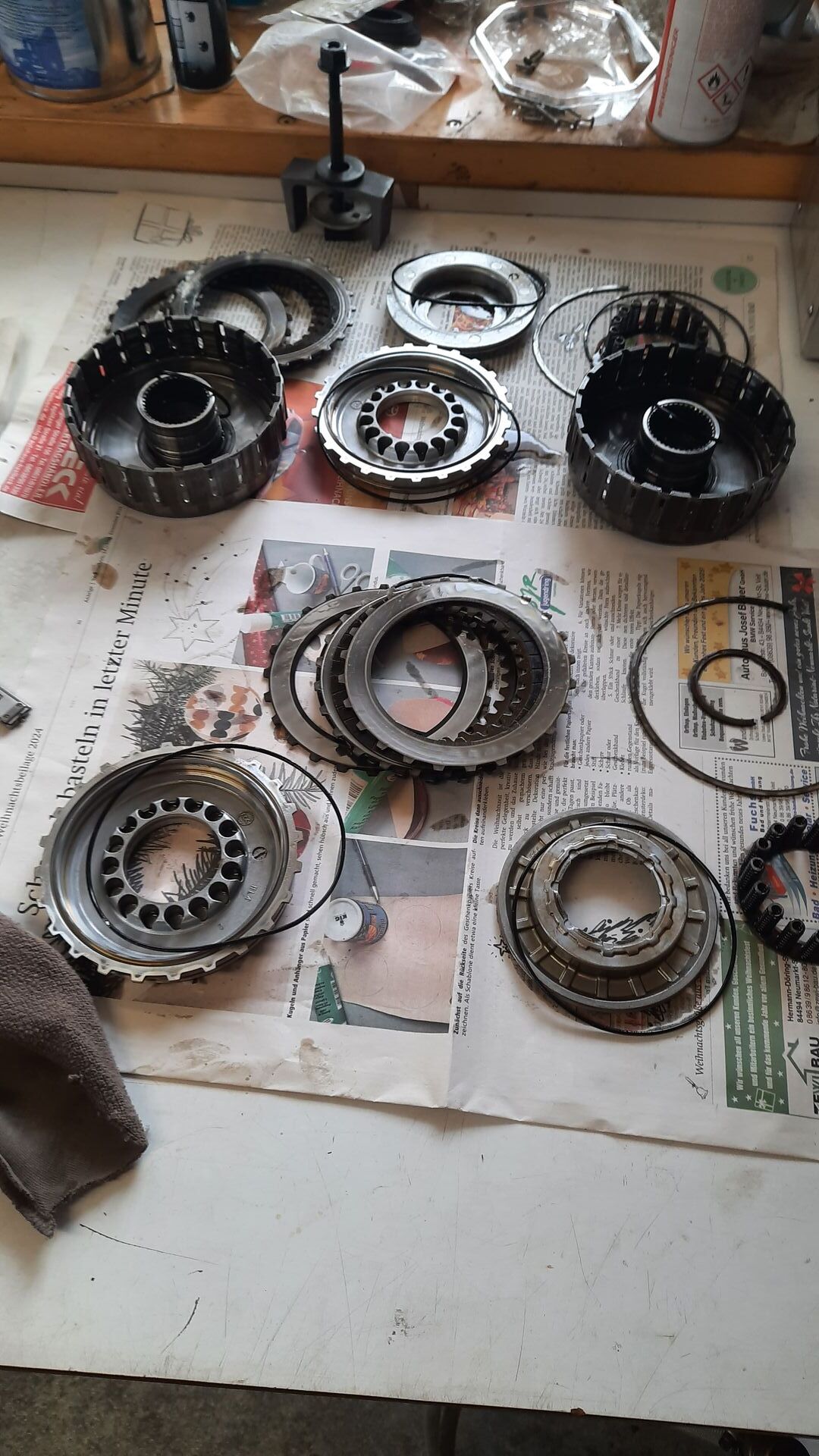Also beide Deckel auf, Kupplungseinheiten kpl getauscht und danach die alten Kupplungen zerlegt. Die Überraschung quasi kein Verschleiß, das Initialmaß der Kupplungen war noch in der Toleranz, leichte Spuren in den Kupplungskörben (quasi vernachlässigbar). Ursache waren die O-Ringe welche die Hydraulikzylinder in den Kupplungskörben abdichten: beide hart, oval und verschlissen. Laut Werkstatthandbuch sind diese O-Ringe zu ersetzen, jedoch gibts die nicht bei Honda, sondern nur kpl Kupplungen. Werde mal bei webike anfragen ob es die in Japan gibt.