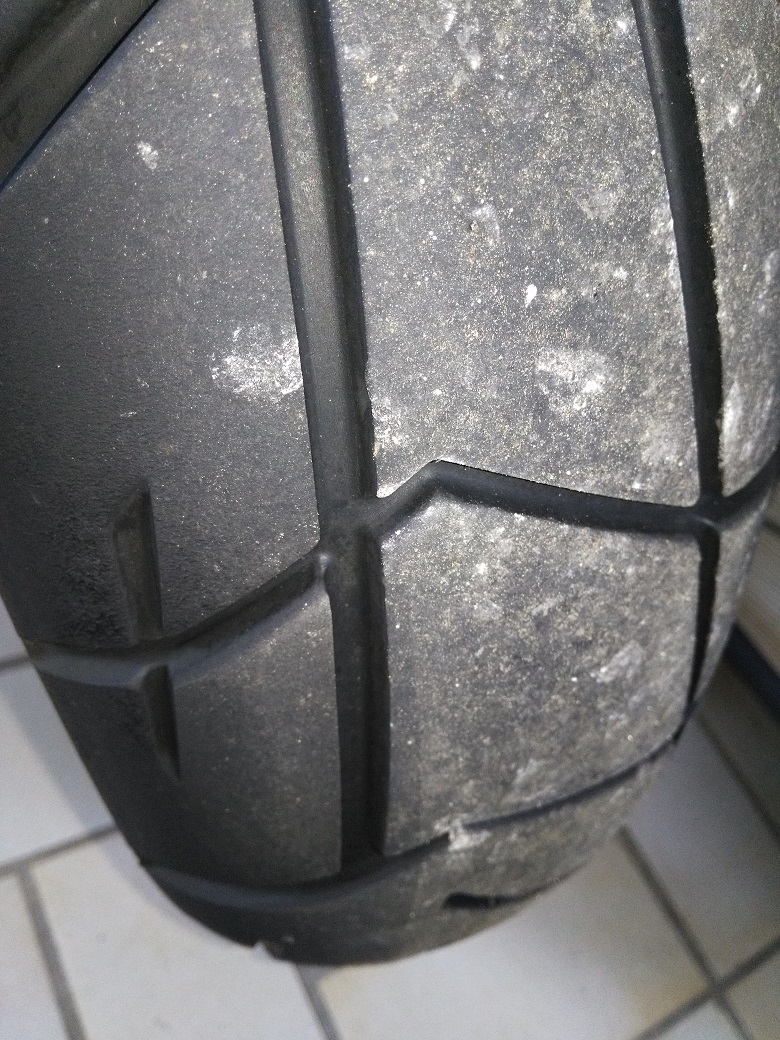 Hinter- und Vorderrad nach 4100 km (davon 1800km Autobahn, vorne Trail II, hinten Trail I):