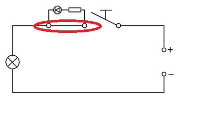 Weil du mit der Verbindung (roter Kreis) deine Beleuchtung im Schalter kurzschließt.