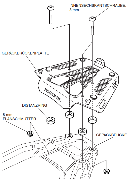 Könnte mir mal jemand den Abstand der 4 Bohrungen der Gepäckbrücke für die Topcase Halteplatte abmessen?