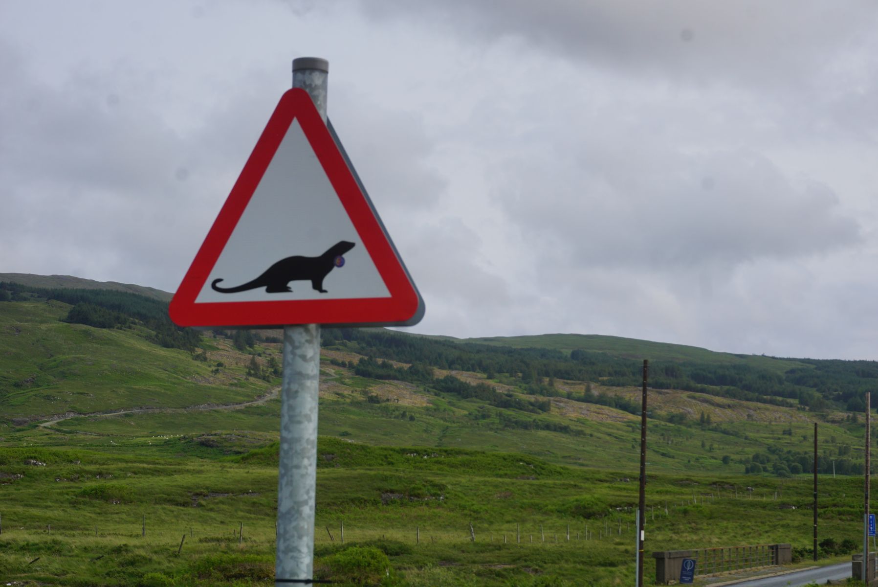Deswegen gibt es gerade für uns deutsche Touristen mittlerweile auch Schilder in deutscher Sprache die warnen. Wir hatten, ebenfalls im Juni, auch einige Hirsche, die uns guten Tag sagten und das highlight waren Otter auf der Straße.