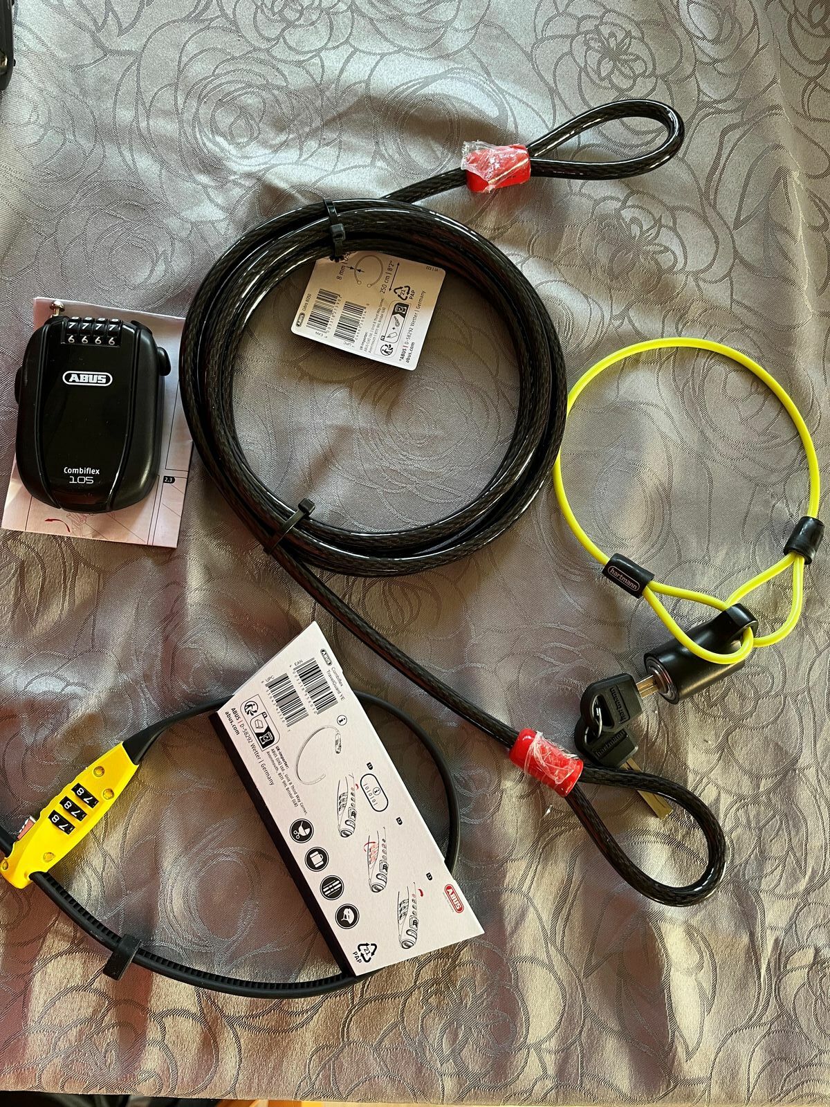 Heute habe ich auf der Motorradmesse Dortmund ein Sammelsurium von Abus-Befestigungsmöglichkeiten (eines von Hartmann) fürs Anbringen unserer Jacken und Helme am Mopped erworben, damit wir nicht immer die dicke Kette nehmen müssen (die nehmen wir nun ausschließlich zum Verschliessen des Moppeds.