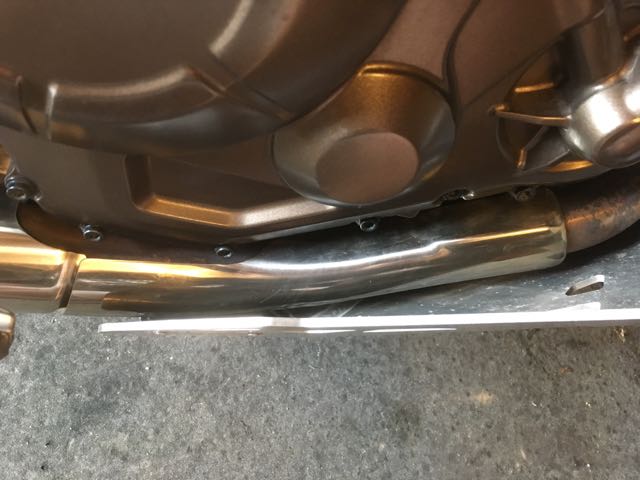 Mit kommt es so vor, als hätte sw Toleranzen, da ja auch von einigen Unterschiede beim Abstand auf der vorderen Seite zum Krümmer unterschiedliche Maße genannt wurden. Bei denen mit großem Abstand zum Krümmer schliff der Vorderreifen bei Vollbremsung. Ich habe Tests durchgeführt mit präpariertem Motorschutz, Bremsungen runter von 100km/h auf Buckelpiste. Nichts zu sehen.