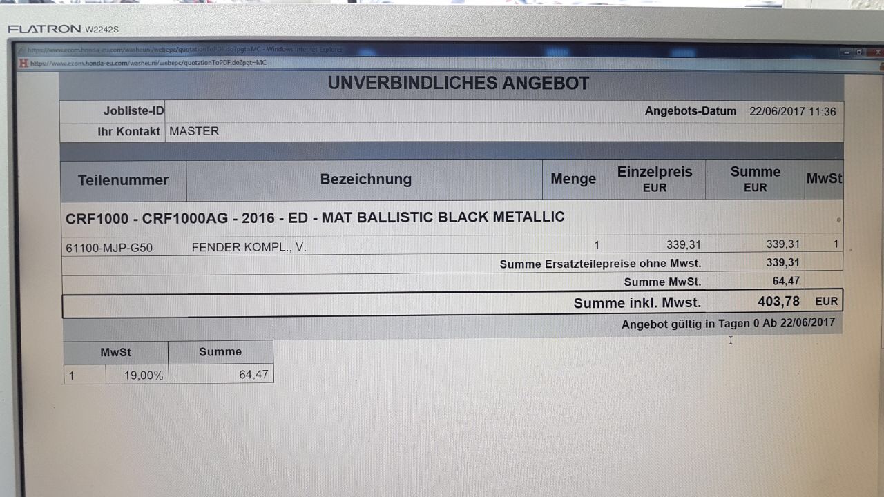Ergänzend: Das ist ein recht teure Geschichte für Touratech. Auch wenn die einen Nachlass erhalten bei Honda, ich habe mir mal den Preis für den Fender raussuchen lassen...