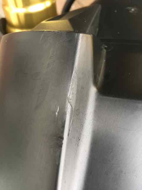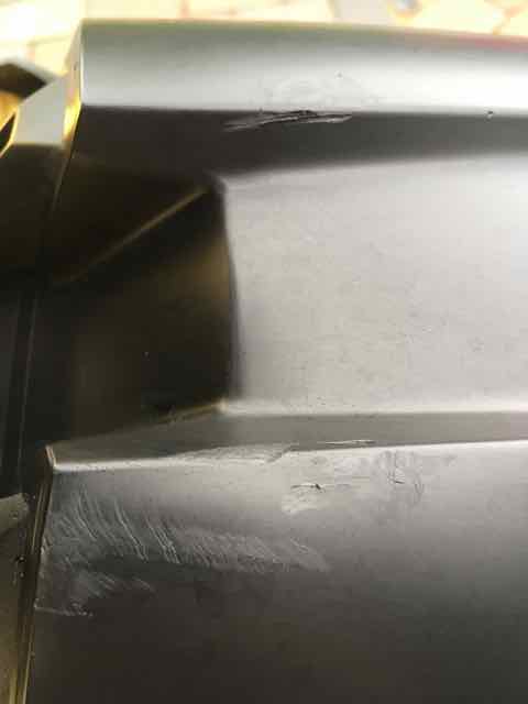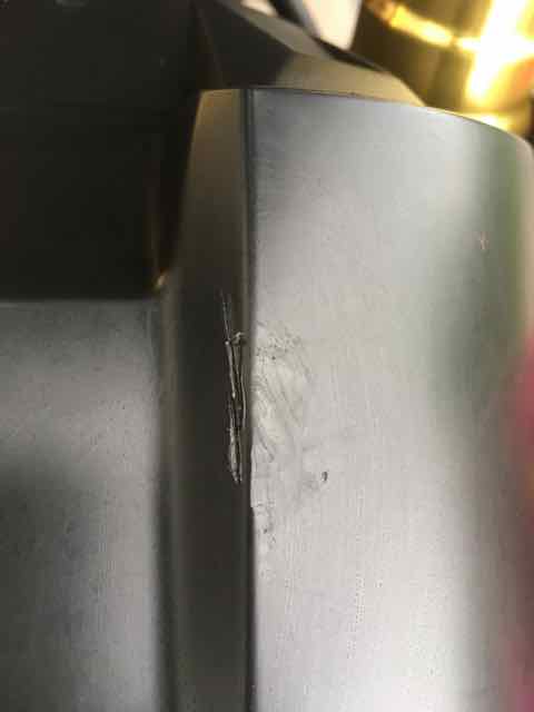 Beim Waschen zuhause stellte ich fest, dass der Sturzbügel bzw. seine vordere Halterung wohl das falsche Konzept ist, da der Platz bei voller Einfederung wohl nicht ausreicht und die Halterung unweigerlich auf den Front-Fender schlägt. Folge: Tiefe Kratzspuren und Einkerbungen im Fender. Ich wendete mich direkt am 5.5.17 an Touratech und schilderte das Problem inkl. Bildern. Die gleichen Bilder habe ich diesem Beitrag beigefügt.