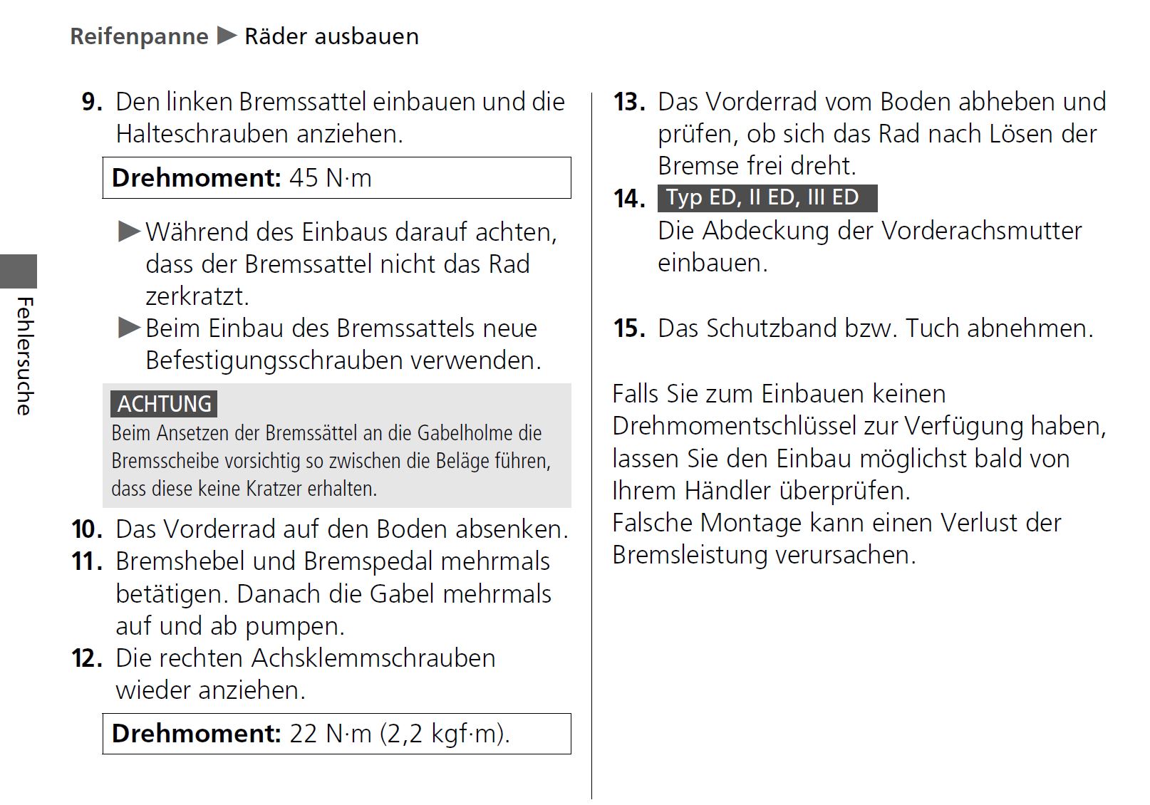 Der Rechte Gabelfuß ist ein Schiebestück und kann seine Position zur Steckachse verändern solange die Klemmfaust nicht angezogen ist.