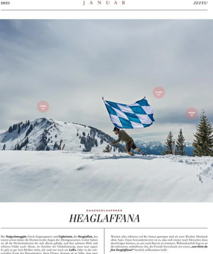Jetzt muss ich aber umplanen bei mir in Wohnung: Seit ich in der Schweiz lebe habe ich jedes Jahr einen "Zefix-Kalender" von der Süddeutschen Zeitung an der Wand hängen damit ich mein Bayrisch nicht ganz vergesse mit den komischen Dialekten hier in der Schweiz!