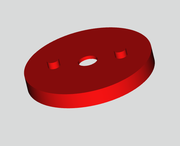 Bohrung im Zentrum aktuell 5,5mm. Die Bohrungen rechts und links haben 3,5mm. Will jetzt mal testen wie sich diese Variante von der Verdrehsicherung drucken lässt. Habe gern eine flache Grundfläche mal sehen wie sich das mit den 2 Zapfen drucken lässt. Eventuell drehe ich das Teil für den Druck auch auf den Kopf, mal sehen.