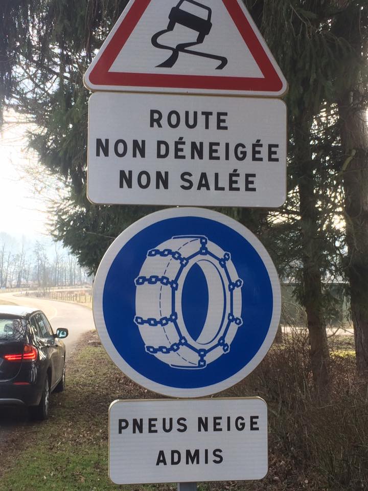 Salz auf der Strasse gibt es bei uns nicht mehr. Die französischer Regierung hat da eine spannende Loesung entwickelt......heisst soviel wie, "wenn es glatt wird, wir streuen nicht und es ist kettenpflicht.wir wissen das ihr keine Ketten habt, also Winterreifen sind auch gut, solange du uns nicht verantwortlich machst wenn du von der Strasse abkommst, denn wir haben dich gewarnt". Somit sind die Strassen sauber sobald der Schnee weg ist