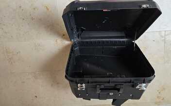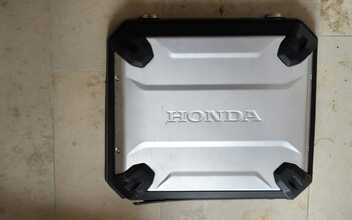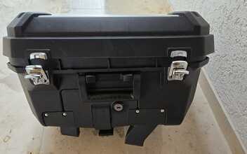 Nun habe ich die Bilder der beiden Koffer. Der Deckel des linken Koffers ist beschädigt und müsste ersetzt werden. Der Metallaufsatz mit Hondaschriftzug ist unversehrt. Der rechte Koffer ist top.