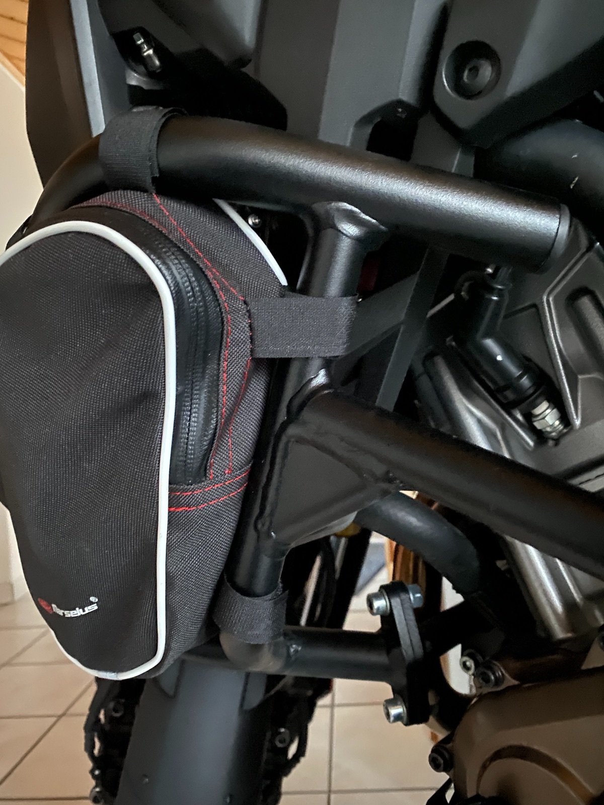 ich hab den Sturzbügel von SW Motech, und die Taschen passen gut dran. Du kannst auf der Internetseite