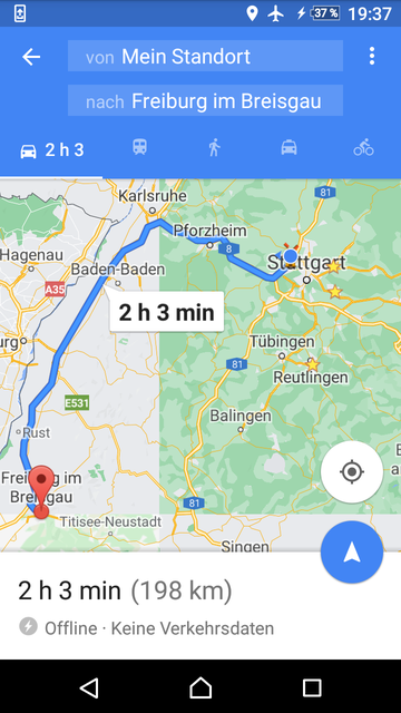 Habe mein Zuhause, rüber in die Vogesen bis runter in die Schweiz als Offlinekarte. Eben nochmal eingegeben, Autobahn meiden, gleich die Meldung dass es nicht geht.