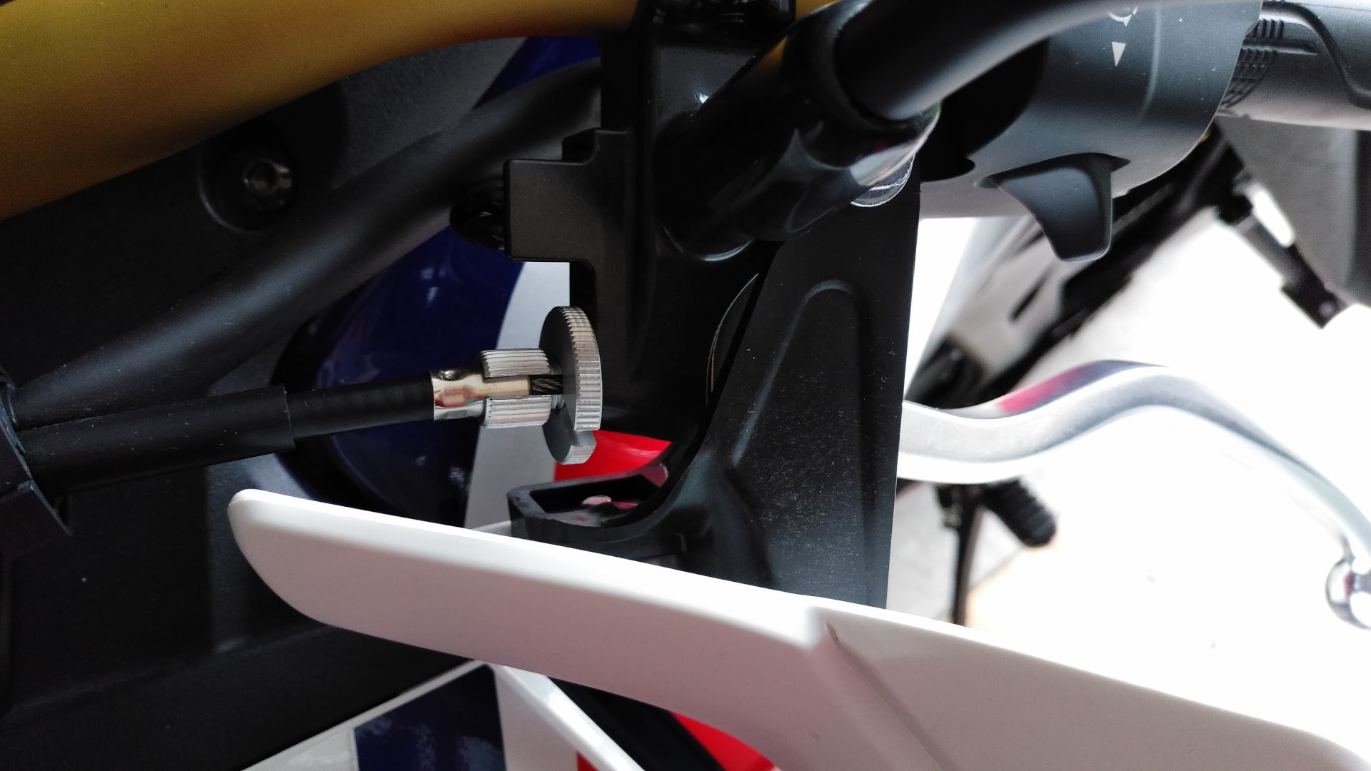 Aber was mich doch etwas irritiert hat ist der völlig ungeschützte Bowdenzugspanner am Kupplungshebel. OK, dass der Kupplungshebel nicht auf die Handgrößen justierbar ist mag man (vielleicht) noch hinnehmen, aber dass es wegen 50 eingesparten Cent in den Bowdenzug hineinregnen muss? Wo jede meiner noch so alten Suzukis da eine Gummitülle drüber hat? Ist das jetzt ein Montagefehler oder liegt das Teil tatsächlich serienmäßig offen?