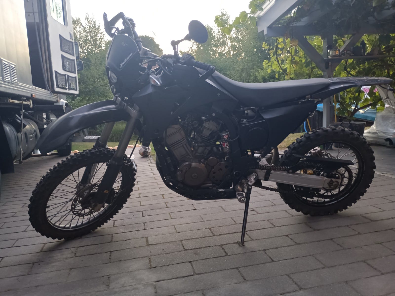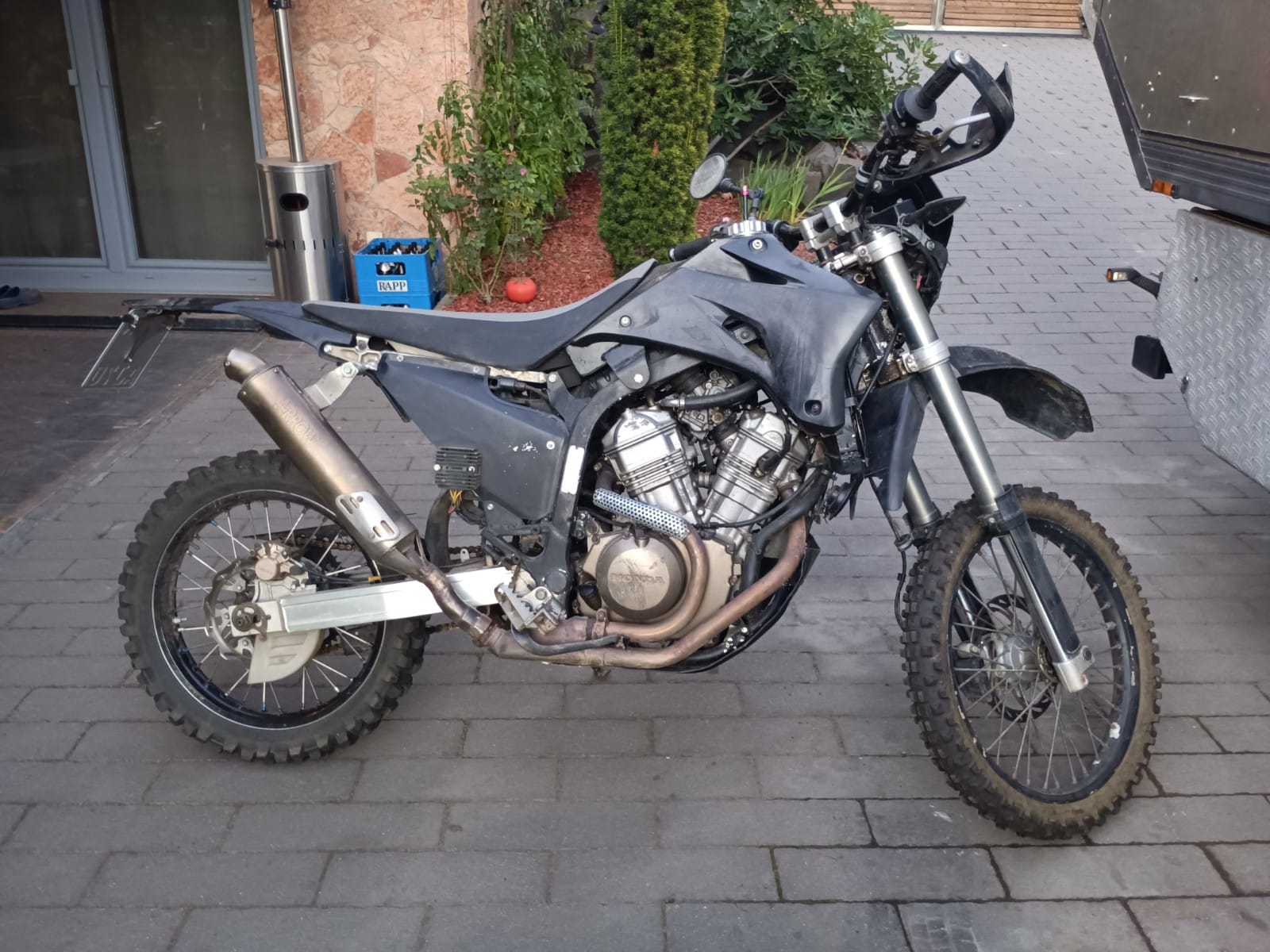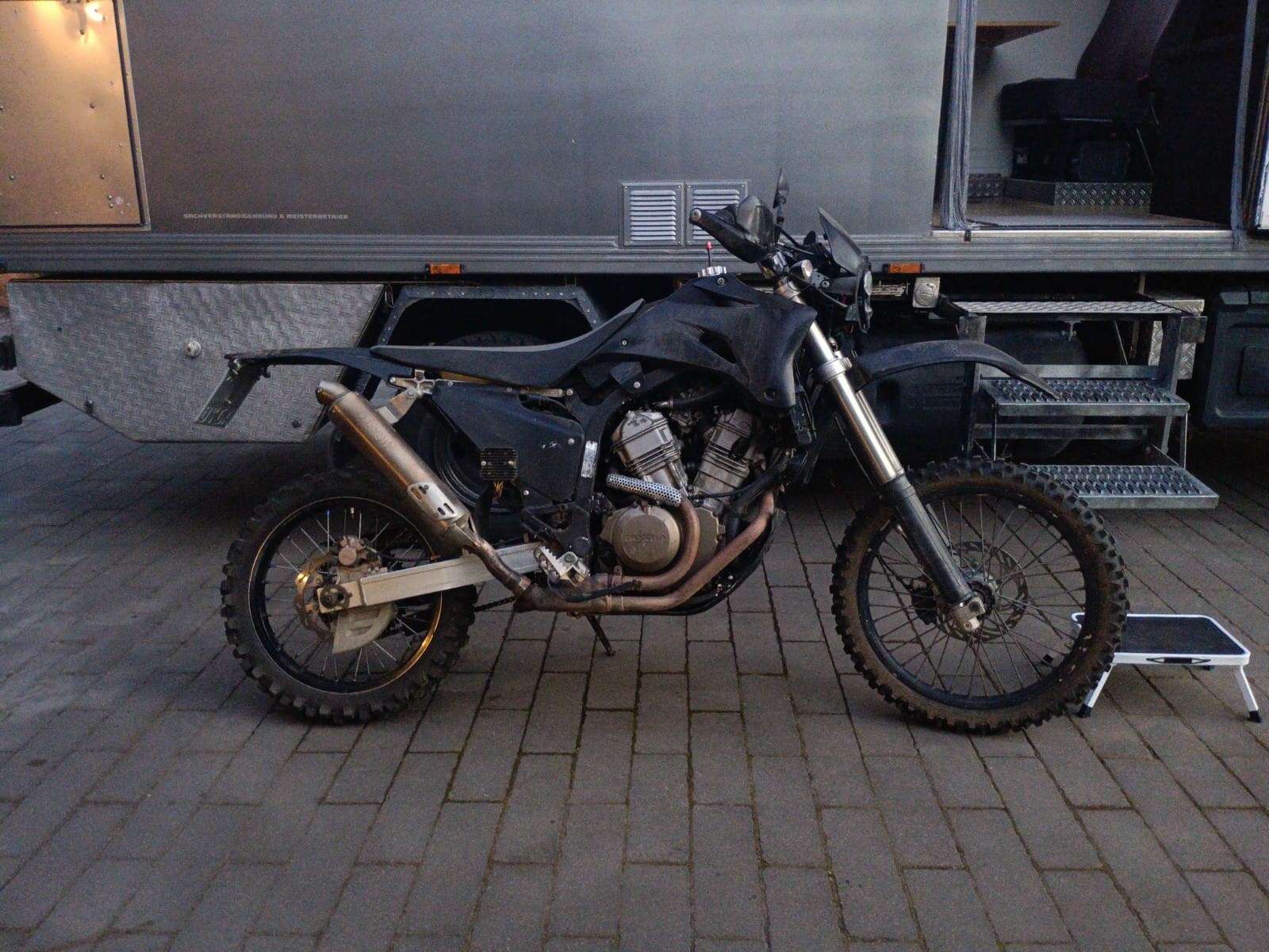 Also, mein Kumpel hat eine umgebaute Africa gekauft, der Vorbesitzer hat das Gewicht von originale 205 kg auf 175 kg reduziert. Alle Teile sind eingetragen. Sogar Fahrradtacho ! ![]()