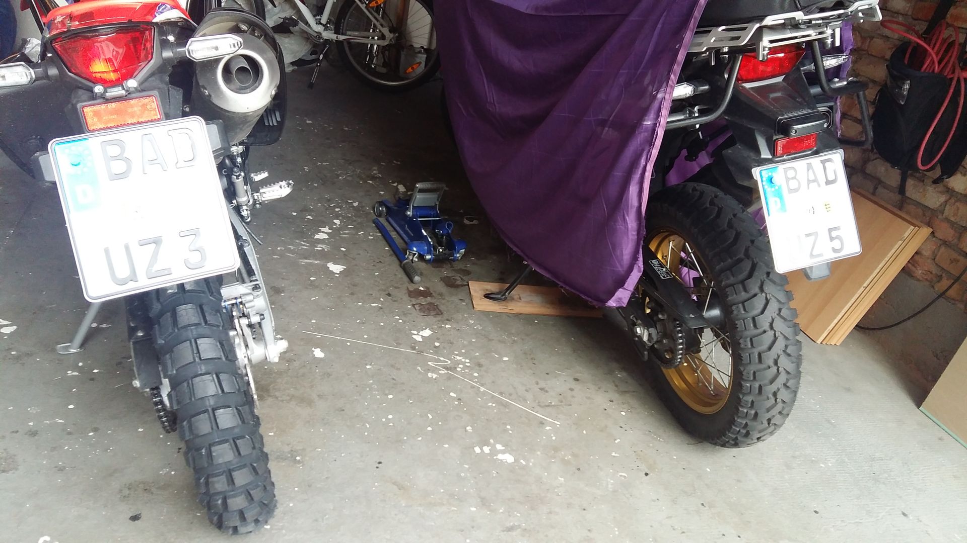 Heute Hinterrad ausgebaut, und den neuen Anakee Adventure aufziehen lassen....der alte hätte wohl noch 1.000 oder 1.500 km gehalten, aber nach 10.000 wollte ich für die Saison einen neuen haben.