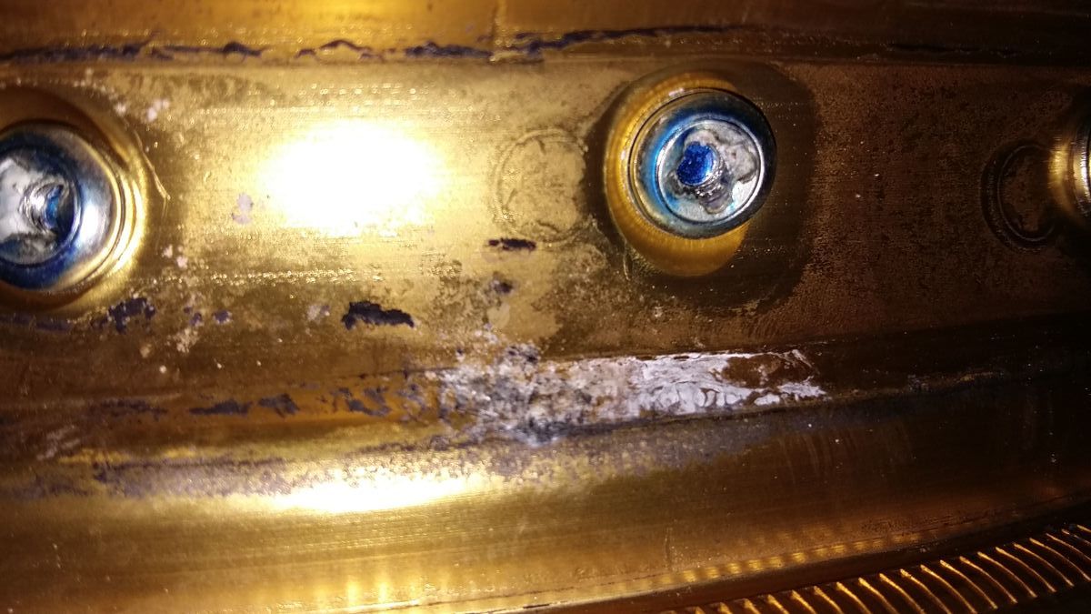 Noch mehr Roststellen ( elox gelöst und Alu oxidiert sich enorm schnell und tief) findest du unter dem Felgenband. Das Wasser dringt da dürch die Speichennippel.