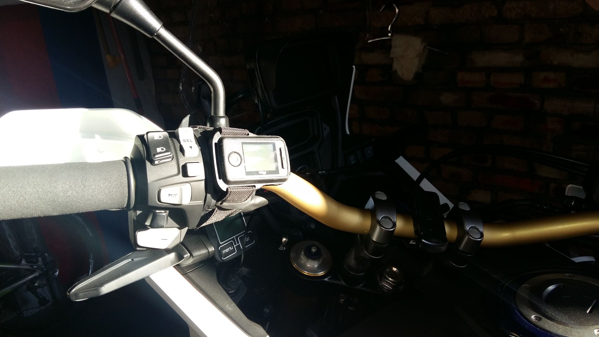 Die Fernbedienung habe ich am Lenker befestigt, mit Daumen sehr bequem ein/ausschalten und gute Momente fangen und aufnehmen.