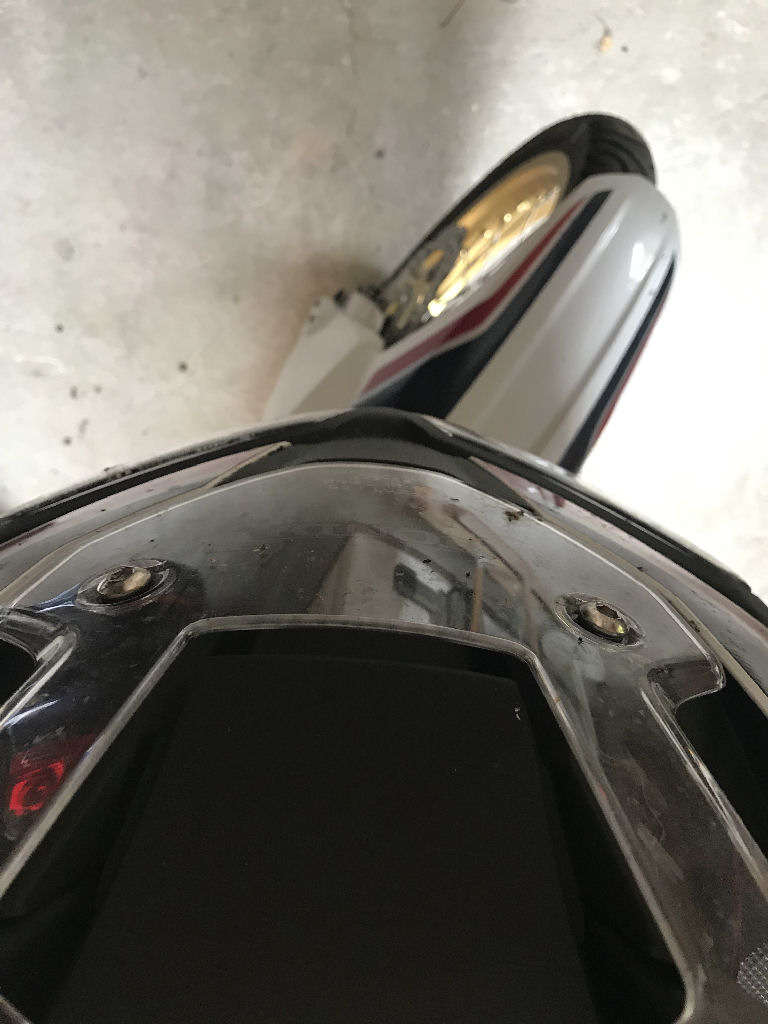 Hier sieht man, dass der Lenker als erstes den Tankrucksack berührt, bevor es die Armaturen sind.