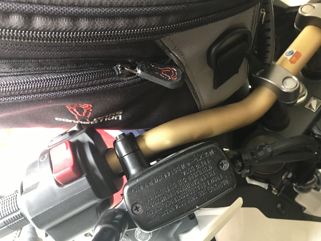 Das gleiche Spiel auf der rechten Seite. Auch hier berührt der Lenker erst den Tankrucksack und nicht die Armaturen