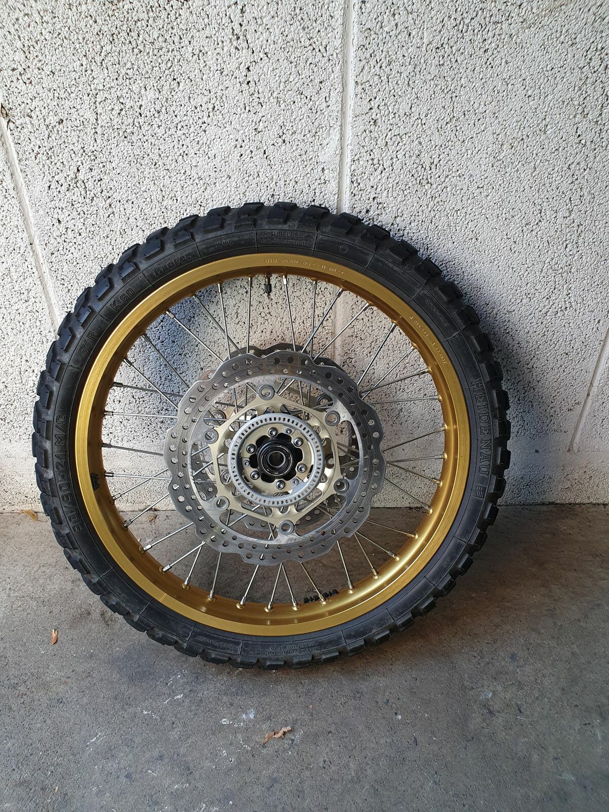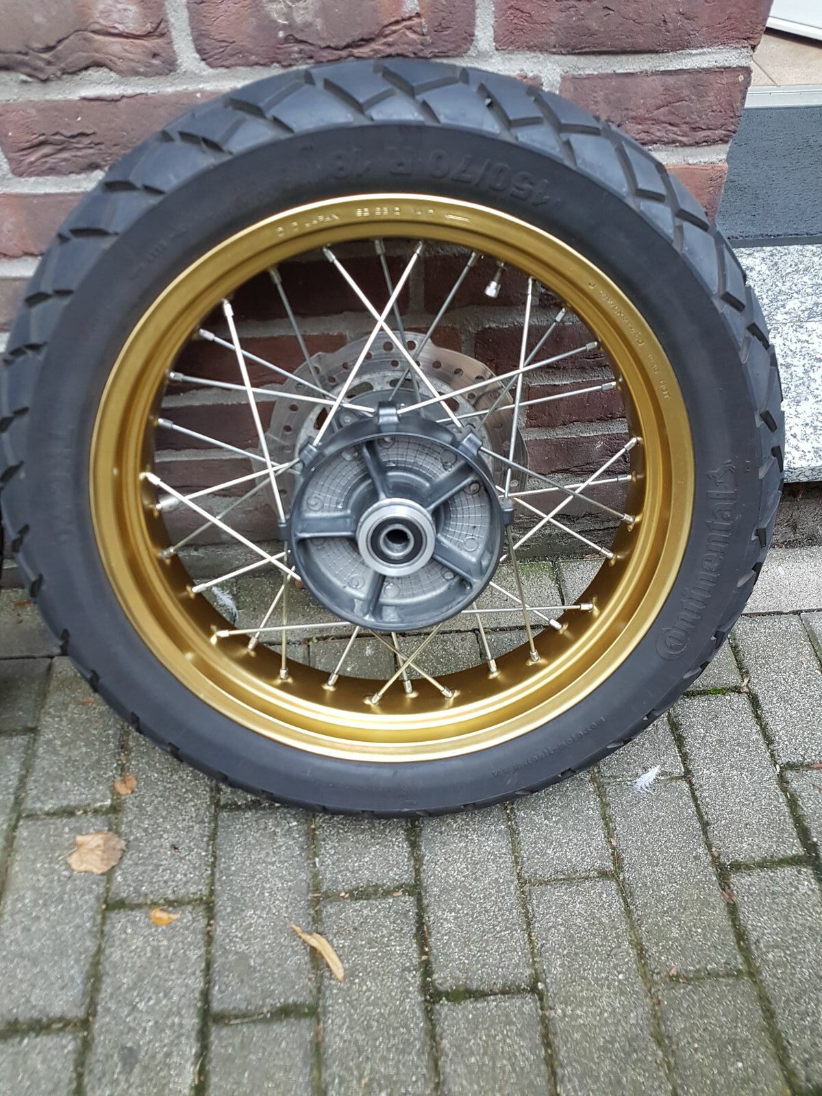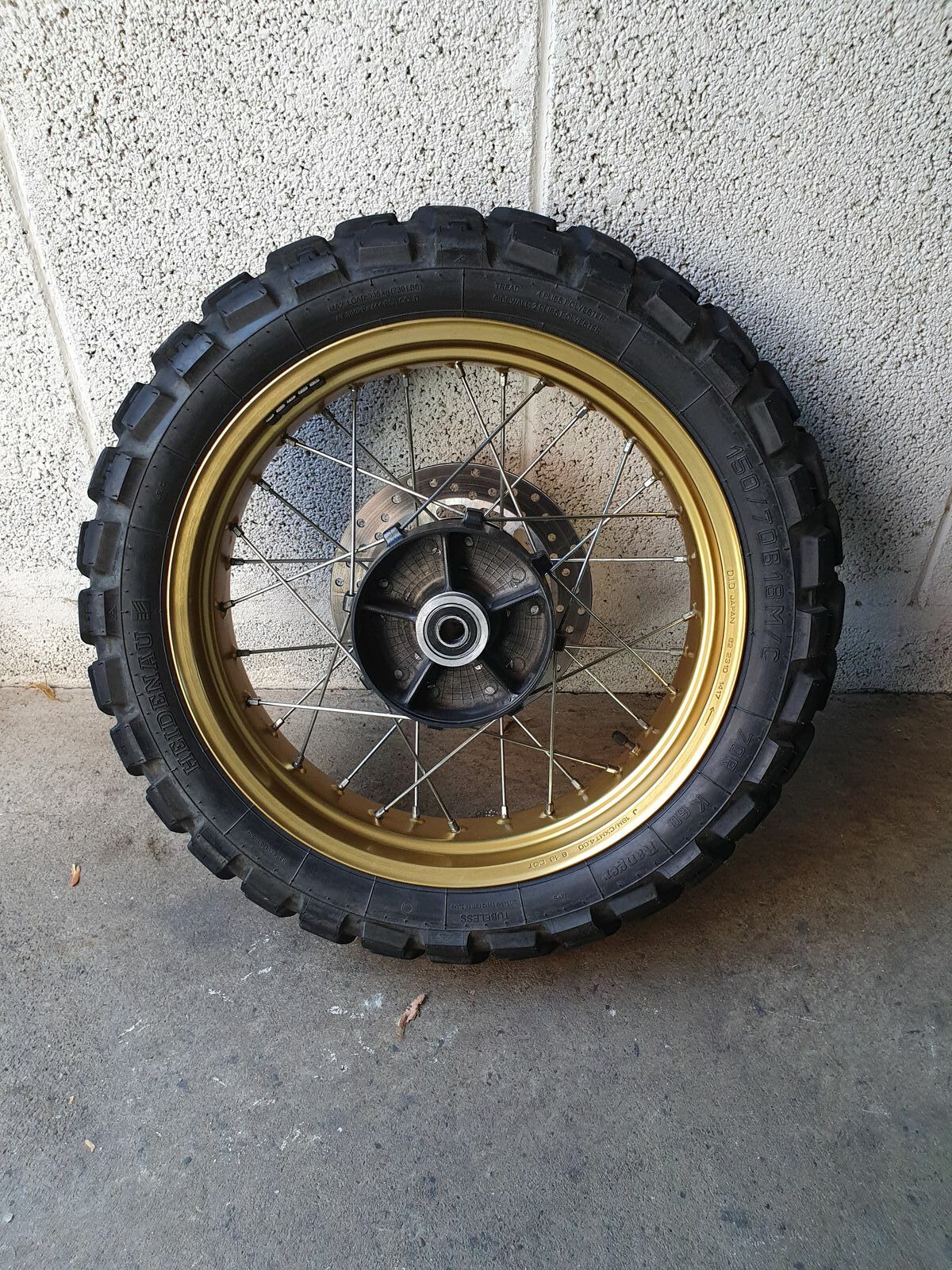 Ich hatte mir einen zweiten Radsatz zugelegt um Offroad taugliche Reifen aufzuziehen, das hat sich aber erledigt da mein Zweitmoped nun ein CRF450L ist.