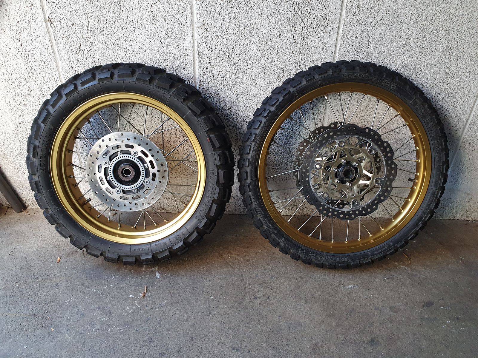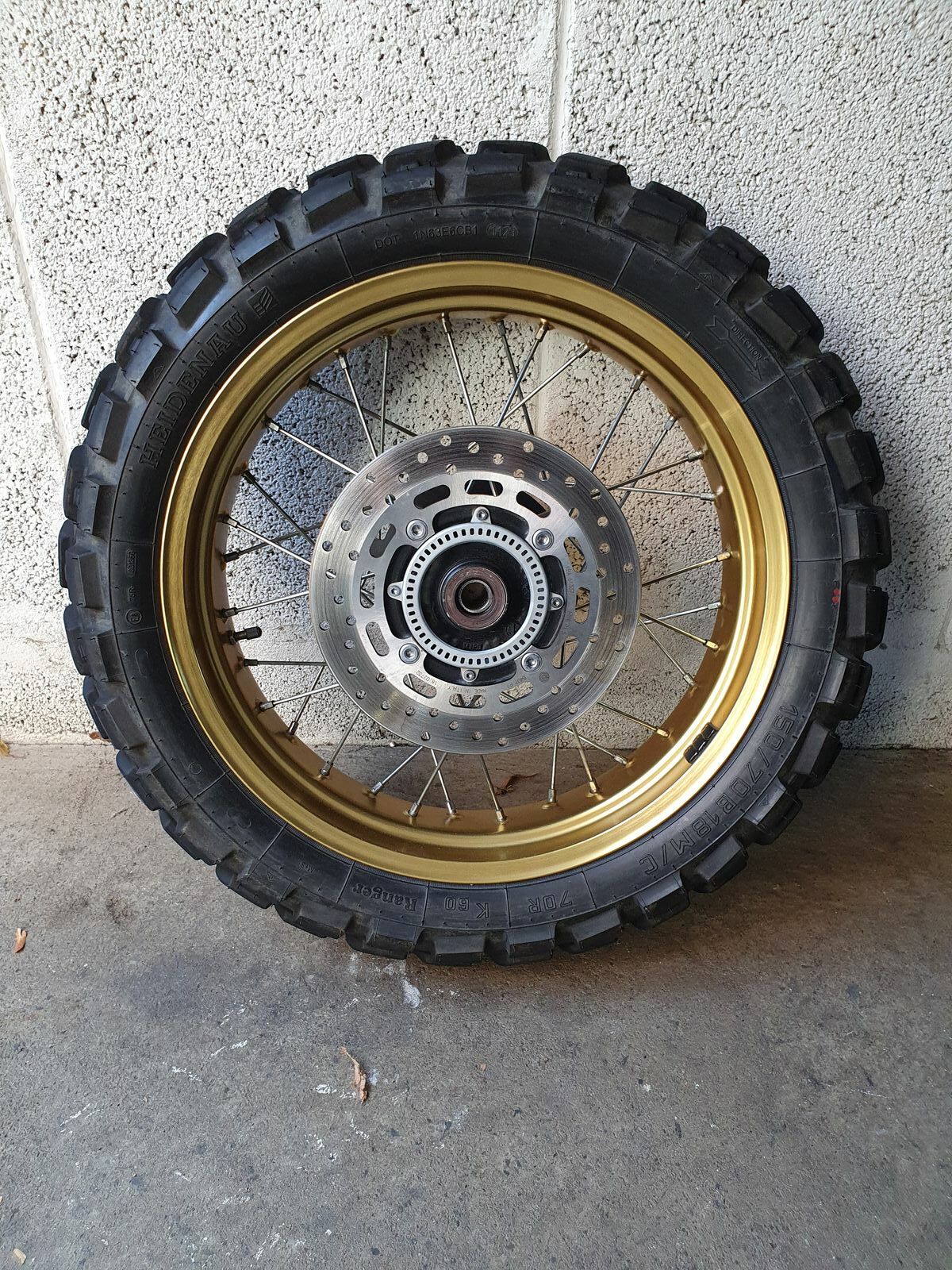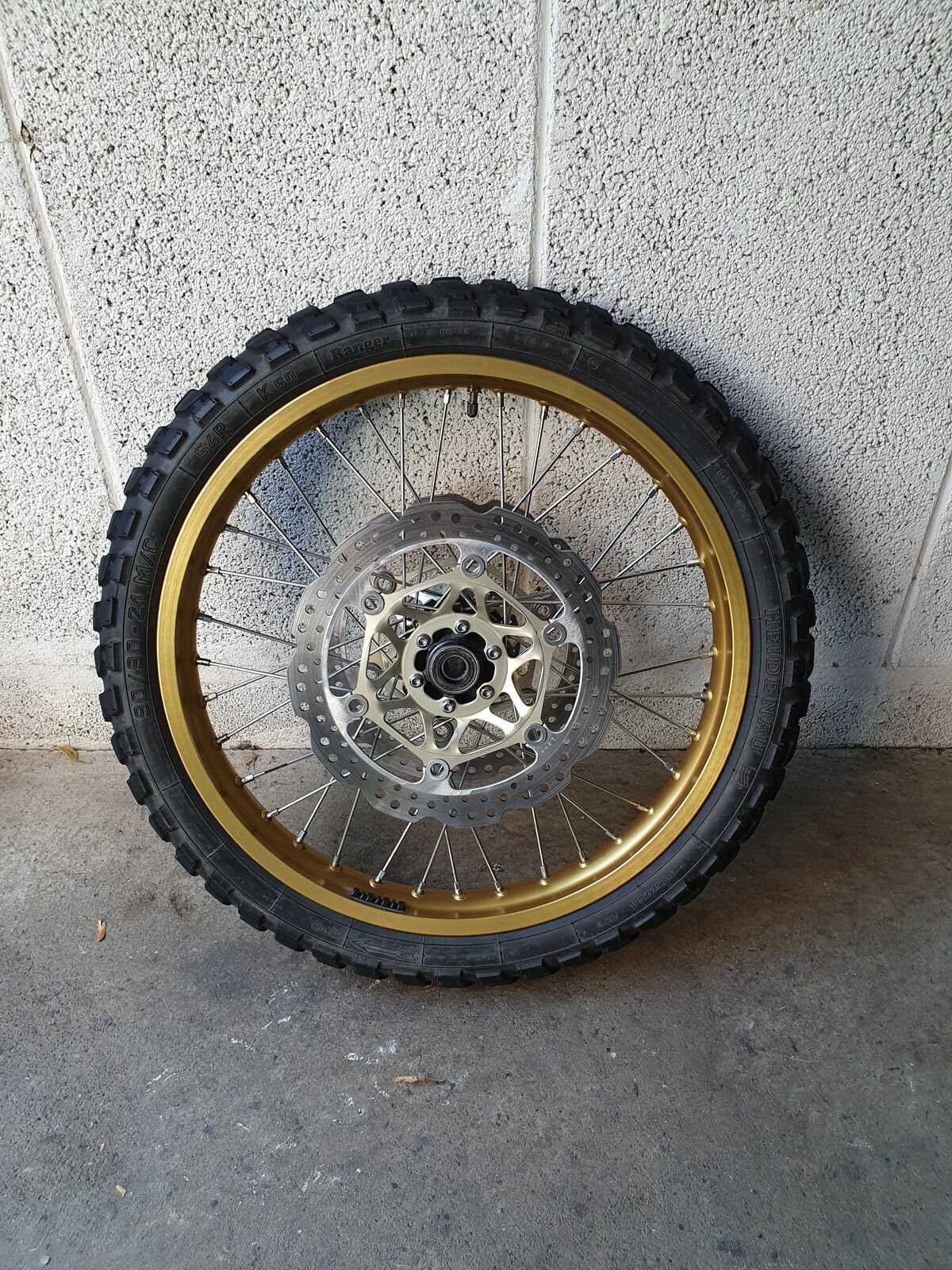Ich hatte mir einen zweiten Radsatz zugelegt um Offroad taugliche Reifen aufzuziehen, das hat sich aber erledigt da mein Zweitmoped nun ein CRF450L ist.