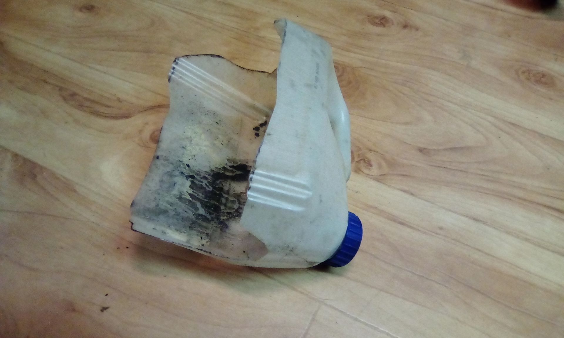 Wenn ich eine helfende Hand habe, geht das ohne Motor, dann dreht jemand das Hinterrad. Wenn man den Motor im ersten Gang laufen lässt, ist das zu schnell. Aber trotz meines abgesägten Kanisters lege ich was unter, weil sonst auf dem Beton Flecken bleiben. Die Soße geht ins Altöl.