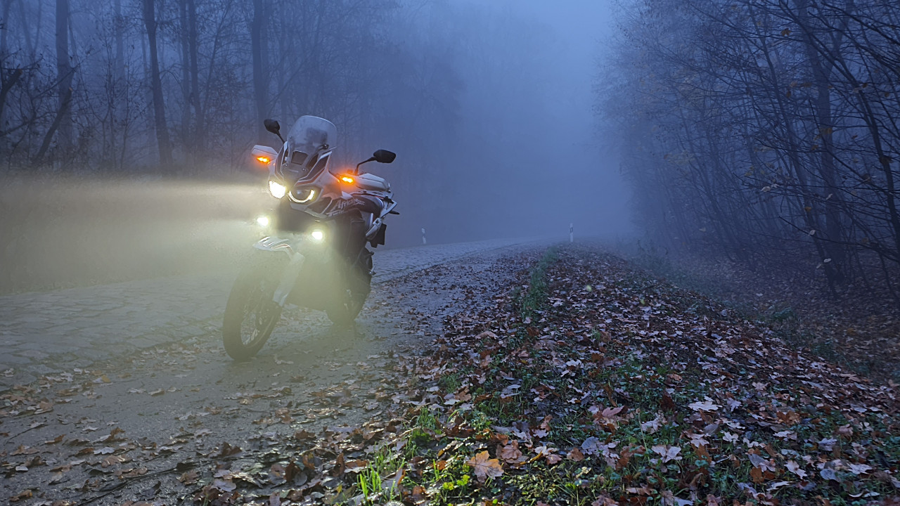 - Man sieht besser bei Nebel, weil der untere Bereich besser ausgeleuchtet wird (dem eigentlichen Sinn dieser Scheinwerfer) Siehe Foto Nr. 1 und Foto Nr. 2 im Anhang wo man das anhand der Lichtkegel vorm Motorrad gut sieht.