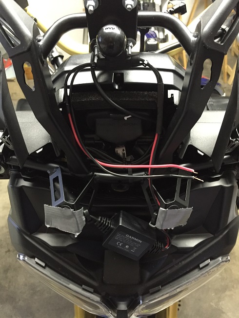 - Navihalterung für Zumo390 montiert und das Kabel oberhalb der Scheinwerfer verlegt, Strom muss ich noch an den vorderen Zubehörstecker anschließen.