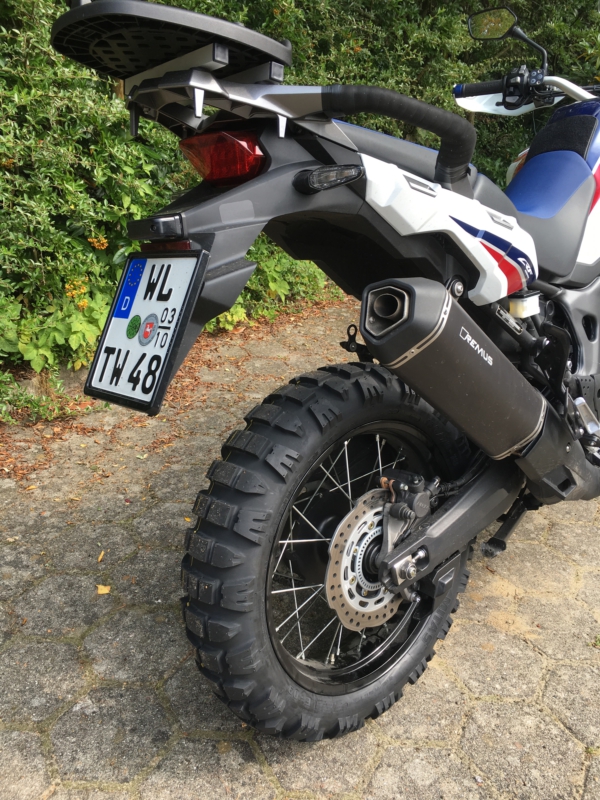 Ich habe mir gerade hinten einen Mitas E 09 Dakar und vorn den Mitas C 17 Dakar (ohne M+SKennung!) aufziehen lassen. Normalerweise kann ich solche Reifen auch selbst aufziehen, doch die Karkasse vom Hinterreifen ist so fest, dass ich die Reifen gleich bei einem Reifenhändler vorbei gebracht habe. Obwohl ich die Reifen online gekauft habe, hat er " nur 60,- € inkl. 2 neue Schlauche + Auswuchten genommen. Die Reifen kosten zusammen inkl. Versand nur 114,- €!!!!. Der C 17 ist ein reinrassiger Wettbewerbsenduroreifen ohne Freigabe für die AT. Grundsätzlich bezweifel ich inzwischen, ob es hinten überhaupt ein Dakar sein muss. Die Karkasse ist so hart, dass man vermutlich kaum etwas merkt, wenn mann den Luftdruck absenkt. Was man bei weichem Boden ja auch machen sollte. Ohne Reifenhalter ist dies ja aber ohnehin nicht allzu weit möglich. Beim nächsten Mal nehme ich den normalen E 09, mal sehen wie der sich gibt. Ich fahre ansonsten noch eine WR 450 F im Enduro-Wettbewerb und kann daher recht gut die bisherigen Offroad-Erfahrungen mit dieser Reifen Kombi einschätzen. Zum Vergleich konnte ich gestern ausgibig die AT meines Bruders auch m. DCT mit den Heidenau K60 fahren (allerdings mit bereits ca. 7.000 km Laufleistung).