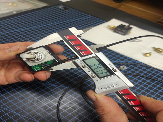 Ach wegen der Bohrung der Drehschalterachse und dem Verdrehschutz. Im Set liegt eine Bohrschablone aus Kunststoff bei, die dient bei Bedarf auch als Halteplatte.