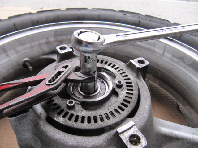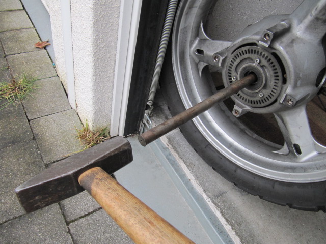 bei meiner kleinen V Strom habe ich auch die Radlager vorne und hinten gewechselt. Die hinteren Lager sind identisch mit unserer Afrika Twin. Gute Erfahrungen habe ich mit Kugellager Express.de gemacht. die hinteren lager 6204 2 RS kosten je 1,45 € und die vorderen 6004 je 1,39 € . Die hinteren Lager sind an meiner V Strom schon 42000 km drin und die vorderen ( bei V Strom nicht identisch) sogar ca. 60000 km . Mit der Qualität bin ich sehr zufrieden, aber den spottbilligen Preis verstehe ich auch nicht. Anbei mein Radlageraustrennwerkzeug, 2 Metalldübel vom Baumarkt. Ein altes im Ausendurchmesser einige Zehntel abgeschliffenes Kugellager. Ein Dübel und ein Altes abgeschliffenes Radlager mit den 2 Neuen Radlager haben für eine Urlaubstour im Gepäck immer Platz. Der Hammer für die Zeltdübel und mein Benzinkocher der bei jedem Frühstück und meist auch Abendessen mir gute Dienste tut ist mir beim Lagerwechsel wenn es darauf ankommt hilfreich. -