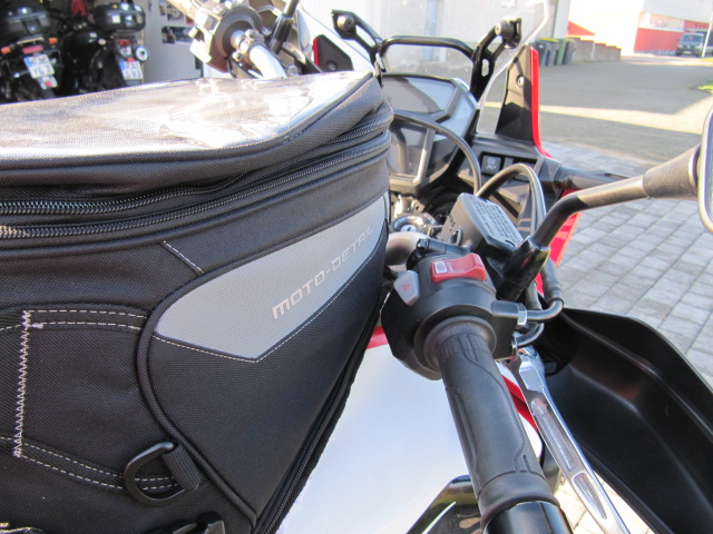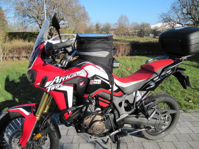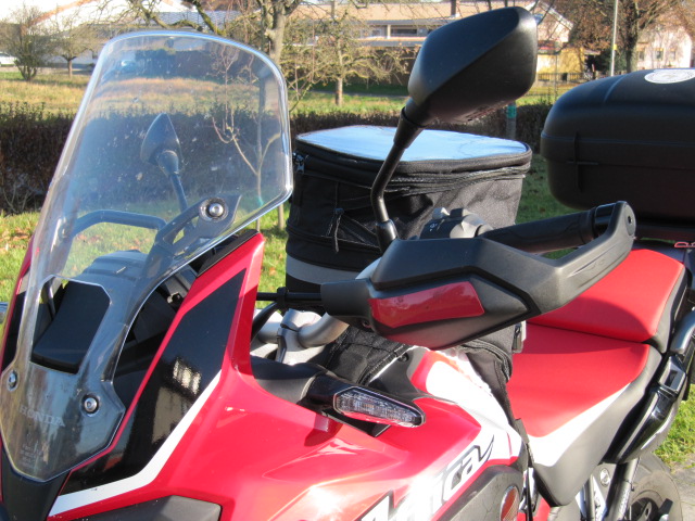 habe schon viele Tankrucksäcke probiert und keiner hat gepasst. Immer war der Lenker im Weg bei vollem Lenkereinschlag. Irgendwie kam ich auf die Idee mal auf meine danebenstehende V Strom zu setzen und bei geradestehendem Lenker mal ein Maß zu nehmen . Mit dem Maßstab nahm ich von meiner linken Achselhöhle die Entfernung zu dem Knöchel des Mittelfingers der linken Hand. Es waren bei mir 52 cm. Jetzt auf die Afrika Twin gesessen und nachgemessen. Da waren es 48 cm. Also löste ich die Klemmböcke des Lenkers und verdrehte ihn etwas aufwärts. Bei vollem Lenkeinschlag darf natürlich nichts an der Scheibe oder der Verkleidung anstoßen. Spiegel , Lenkerschalter eingestellt mit dem entsprechenden Sicherheitsspiel zur Verkleidung und Scheibe. Und , siehe da die Entfernung von Achselhöle zum Knöchel des Mittelfingers sind jetzt genau gleich. Plötzlich passt mein alter kleiner Tankrucksack der mir allerdings mit 8Litern für große Touren zu klein ist. Zu Detlef Louis gefahren und den Neuen Moto Detail Adventure hingehalten .(20-26 Liter) Wunderbar er passt. Bei der 25% Aktion bis 7.12 noch 25 € gespart anstatt 99,95 jetzt 75 € bezahlt. Was mich noch beim Lenkerlösen gewundert hat. Die Klemmböcke waren auf der vorderen Seite (Richtung Fahrtrichtung ) voll runtergespannt und die Innere Seite zum Fahrer Angezogen wobei der Spalt des Lagerböckchens sehr groß ist. Insgesammt waren die Schrauben zu sehr angeknallt. Seit ich Motorrad fahre habe ich mir angewöhnt das der Spalt des Lagerböckchens Vorne und Hinten Gleich ist. Bilder des montierten Tankrucksackes setze ich Morgen rein. -