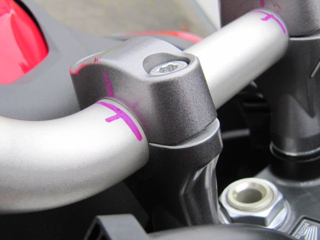 danke für eure aufschlußreichen Antworten, besonders an Manfred der sich besonders viel Mühe mit der Lenkerklemmung gemacht hat. Hier noch ein paar Bilder vom neuen Tankrucksack der jetzt bei vollem Lenkeinschlag ohne zu berühren passt, dank des verdrehens des Lenkers nach oben. -