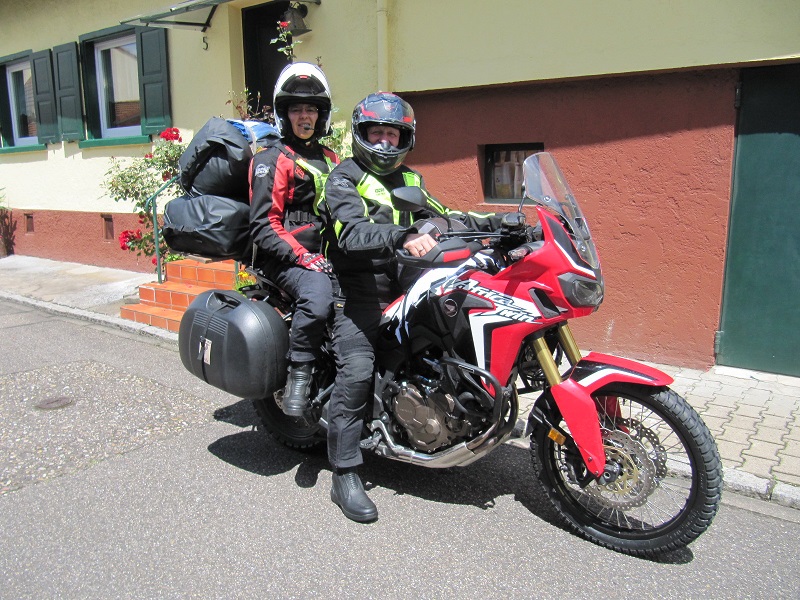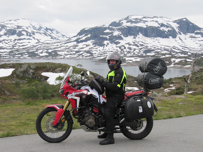 so wie das Gepäck auf dem Motorrad montiert ist, ist es natürlich noch für einen Beifahrer gedacht.( Sorry meine Frau hat gerade Fotografiert). Alleine ist so ein bepacktes Motorrad schlecht zu fahren ,aber durch den Beifahrer wird das ganze stabilisiert. So sind wir 3,5 Wochen durch Norwegen und Schweden mit der Afrika Twin unterwegs gewesen. (10000 km).